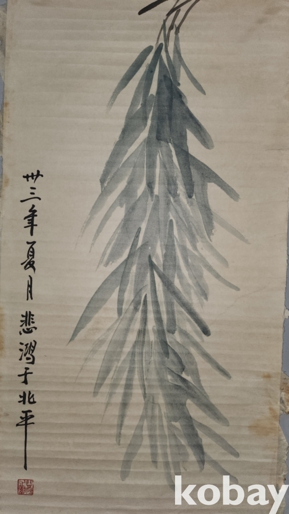 배접은 완료된 상태입니다, 얼룩과 구김 보임니다,