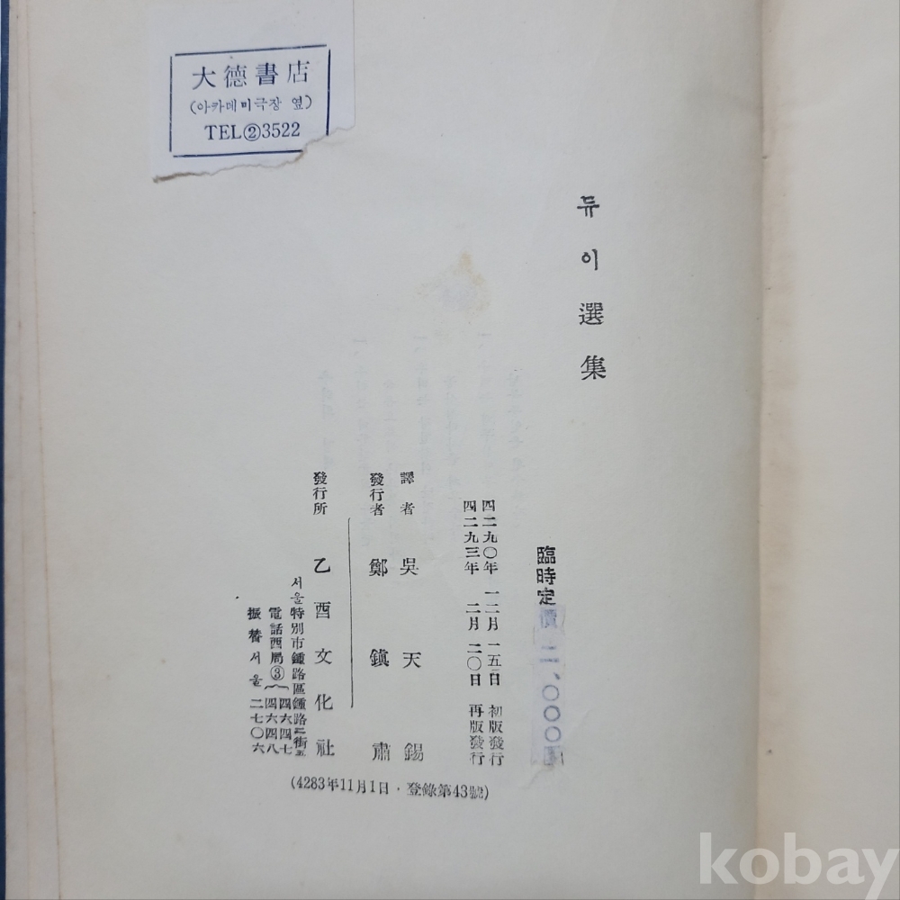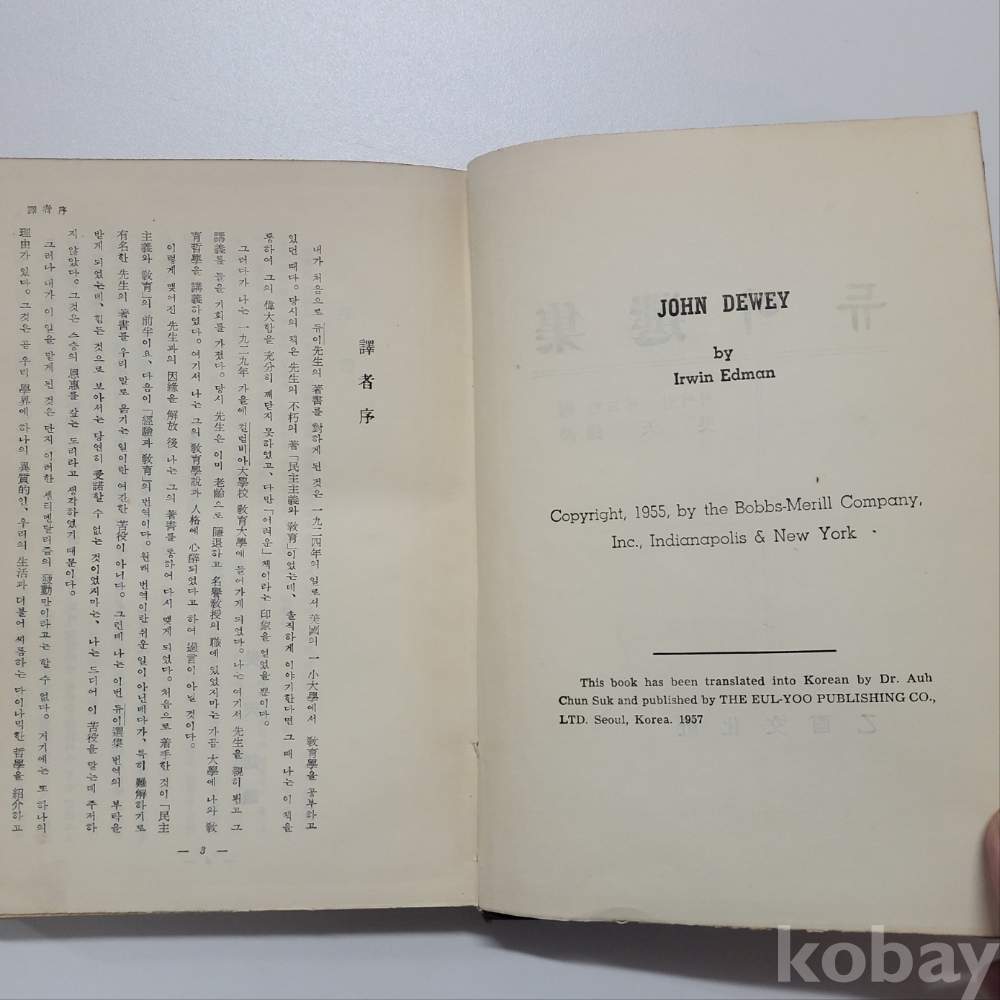 [희귀본] 듀이선집 (을유 1960년 발행) : 세월흔적, 중하급/서고zz02