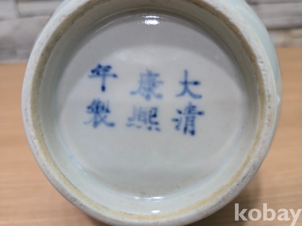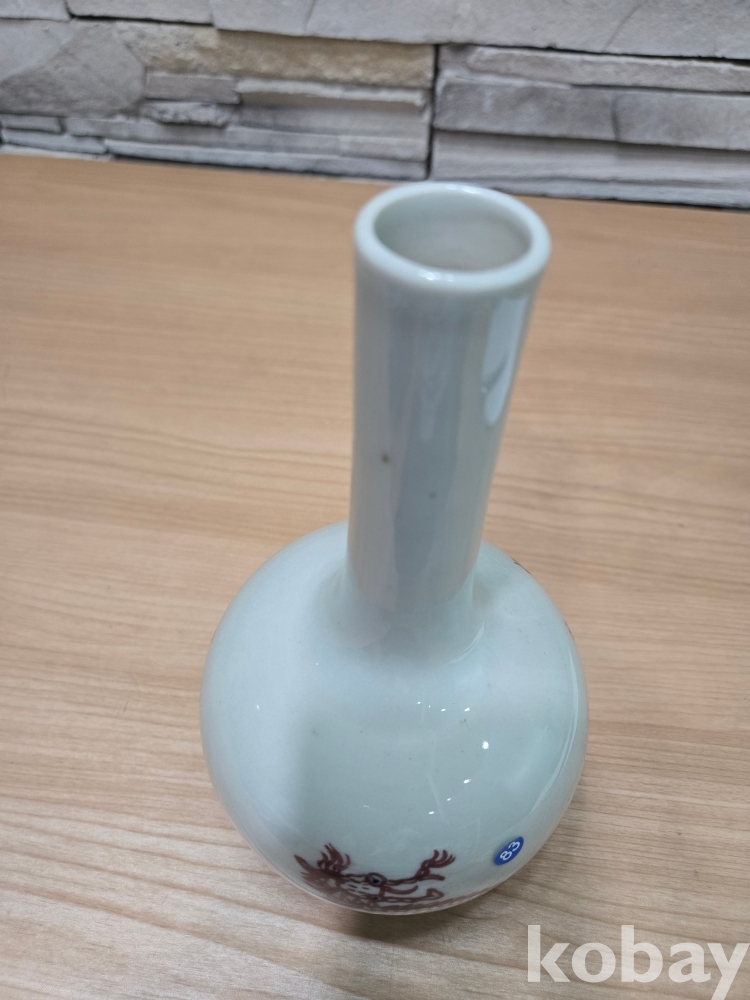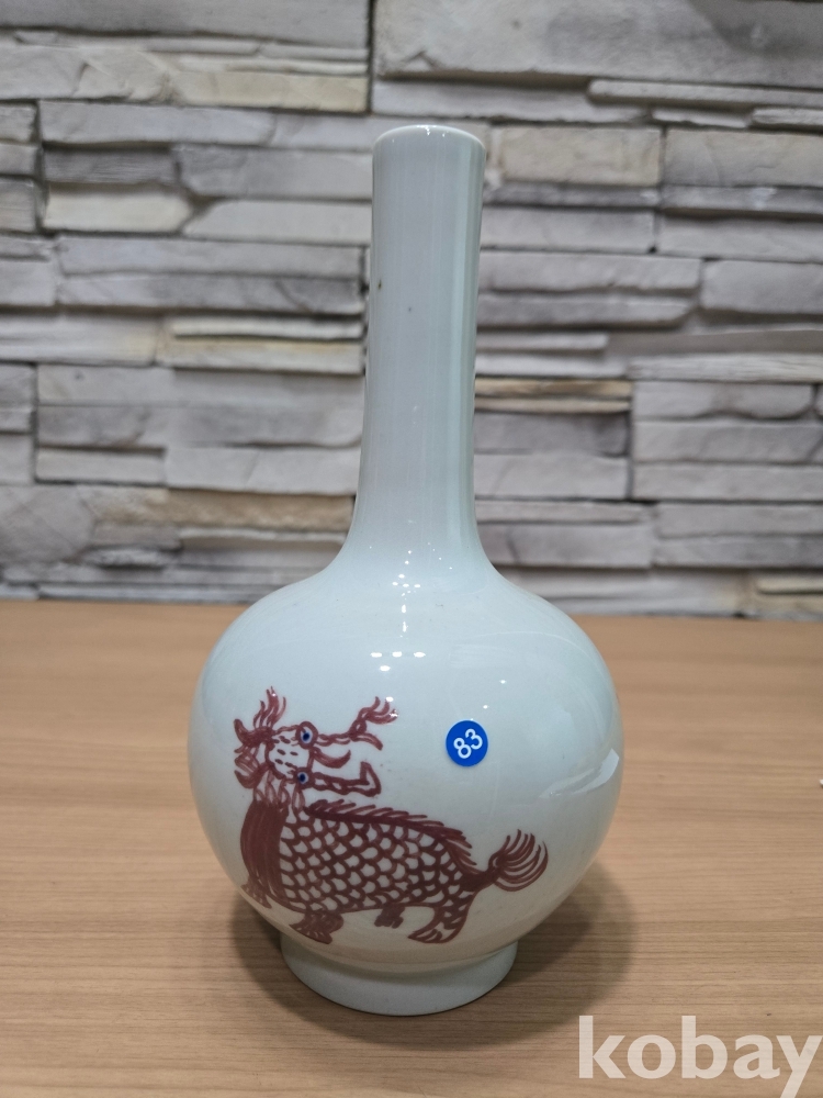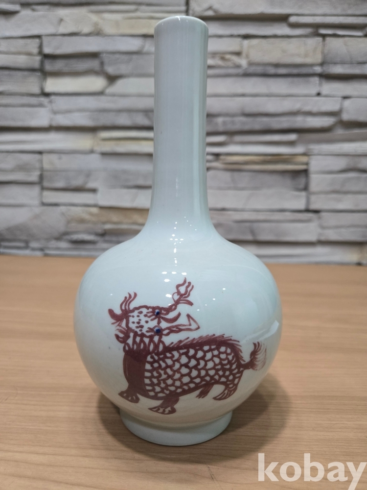 동물 문양이 있는 목이 긴 주병형 도자기 입니다.
