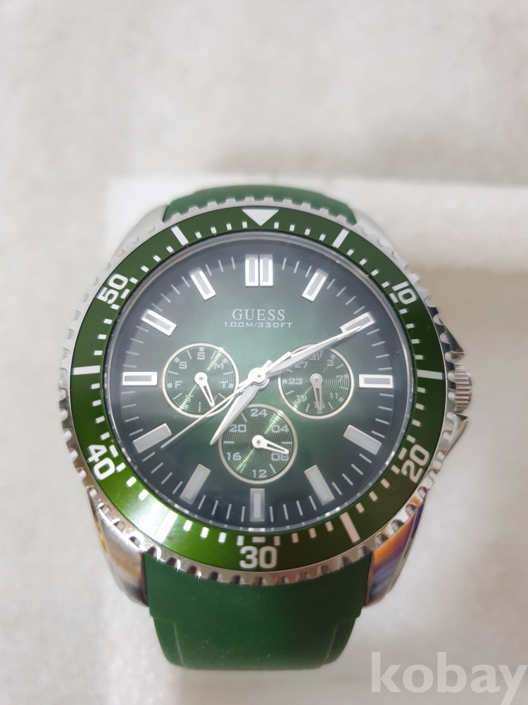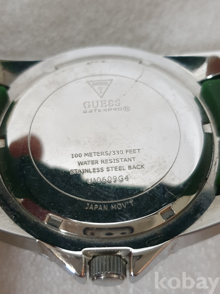 {천원경매} Y-11.0797 게스 초록줄 손목시계(작동확인안됨, 정품확인불가)