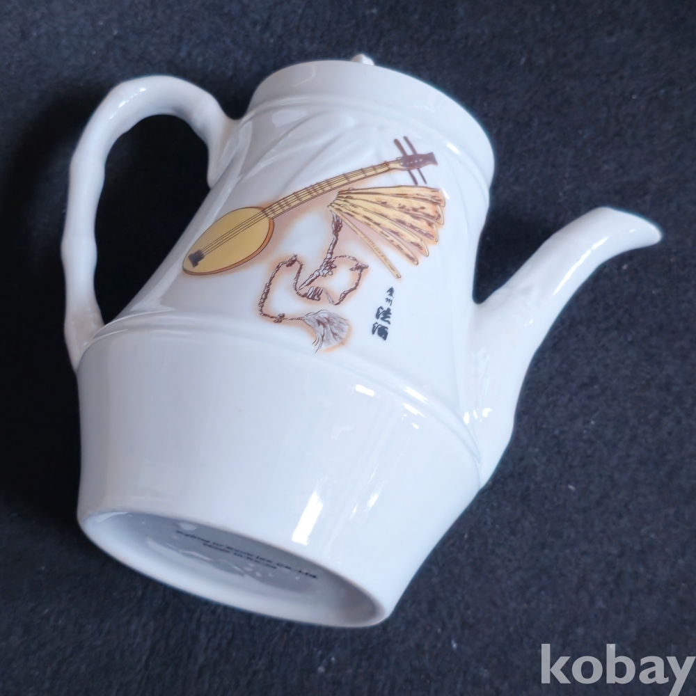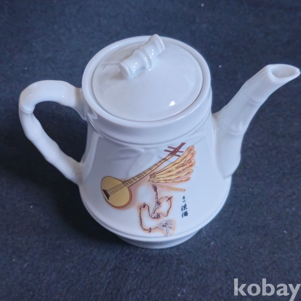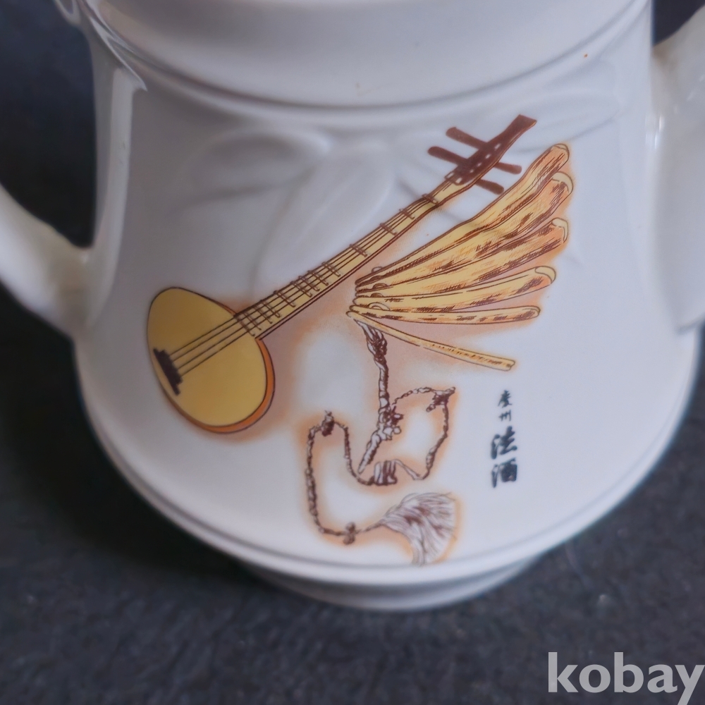 (((근현대사자료/술자료))) 오래전 우리고유의 악기그림이있는 경주법주 도자기 주전자