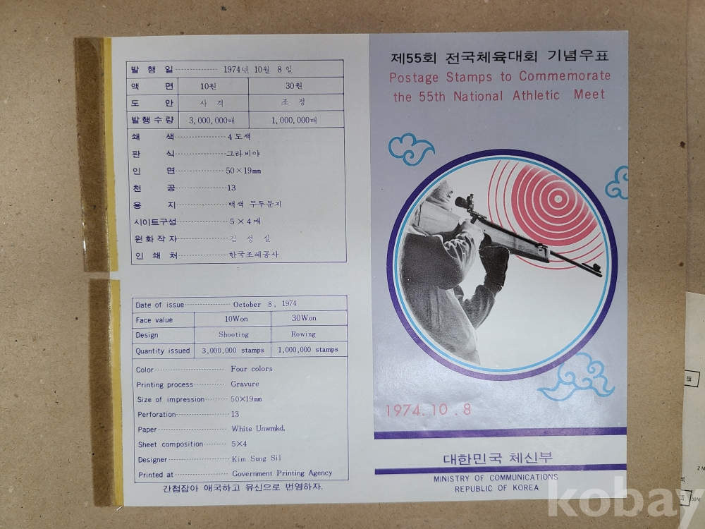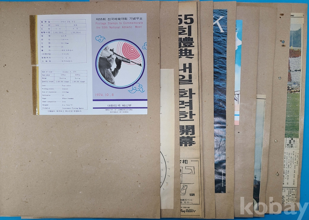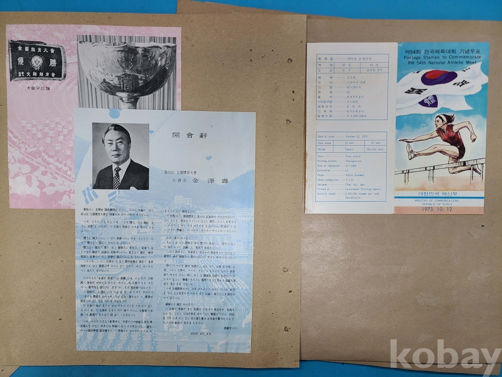 1973-74년 제54회,제55회 전국체육대회 기념우표 발행 관련자료 9점