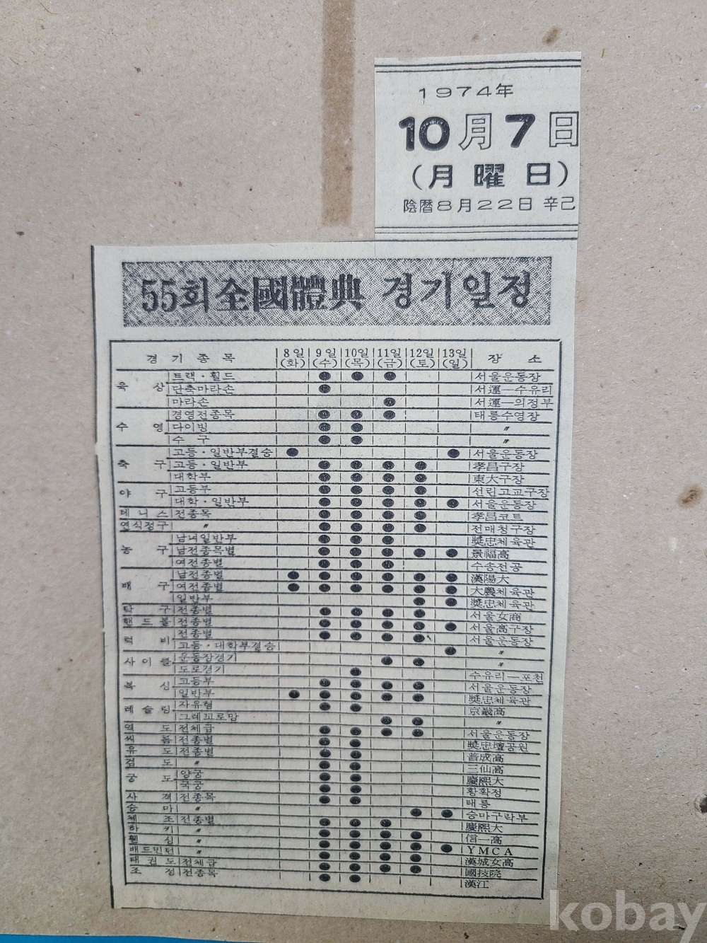 *안내카드,신문스크랩,경기일정,경기장약도,개.폐회식 및 식전행사 등