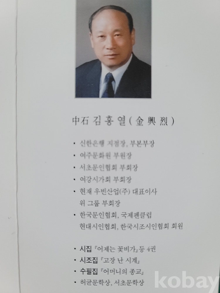 김흥열(경기도 여주: 1947) 저자서명 시조집.