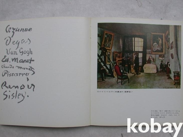앞에 프랑스어 표지와 화가 사인 및 바질의 <인상파의 화가들>이란 그림이 먼저 실렸고, 이어서 "1970년부터 프랑스의 명화들을 한국에 소개하는 특별전시회를 거듭 열어온 조선일보사"가 창간 56주년을 맞아 프랑스대사관 등의 협조로 "빛과 색의 교향"이라는 특별전을 열었다는 말이 있다.