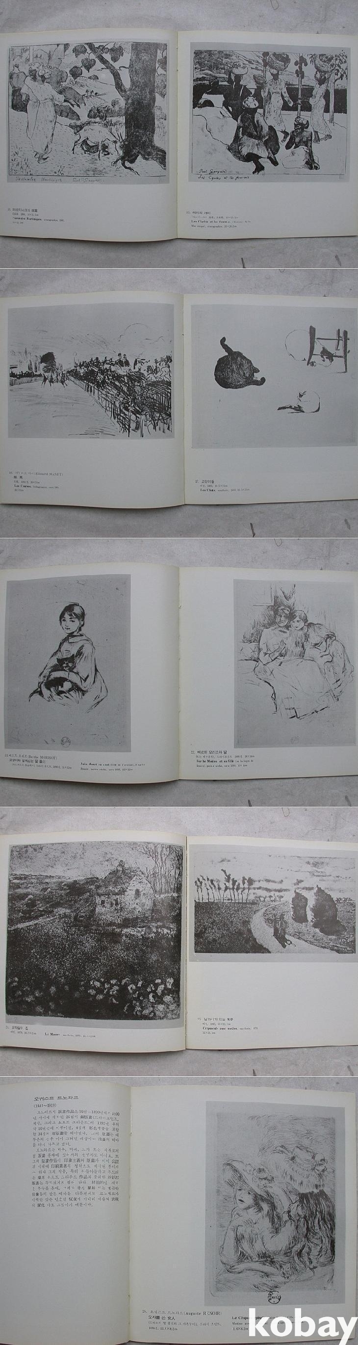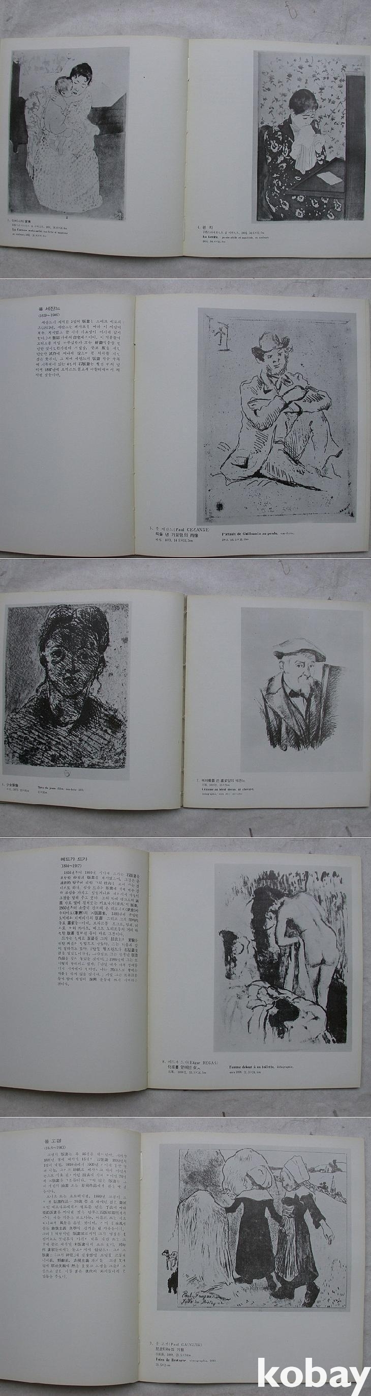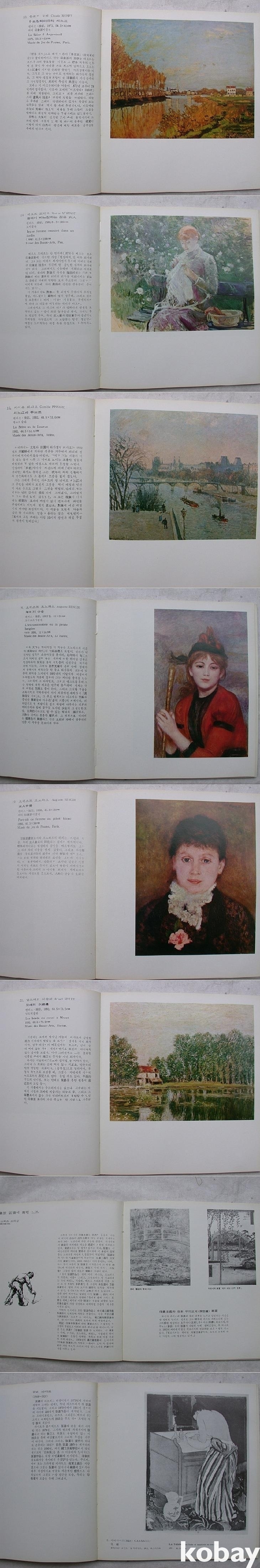 프랑스문화성의 드메츠가 쓴 <인상주의> 소개글(불어원문 병기)과 홍대교수 이일의 <자연에 대한 시각과 감수성의 혁신 - 인상파전에 붙여>라는 해설논고가 있다. 이어서 <유화전시작가 프로필>이 한 쪽에 한두 명씩 부댕, 카이유보트, 세잔느, 드가, 고갱, 기요맹, 르부르, 마너, 모리조, 모네, 피사로, 시슬레, 르노와르가 약력과 간략한 소개문 및 드로잉작과 함께 소개되어 있다.