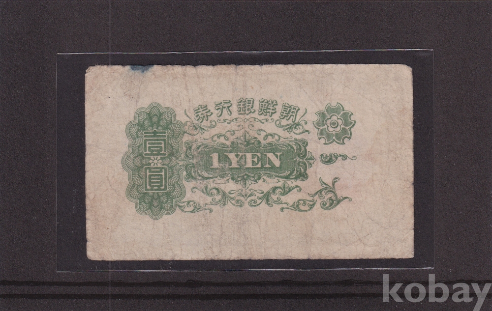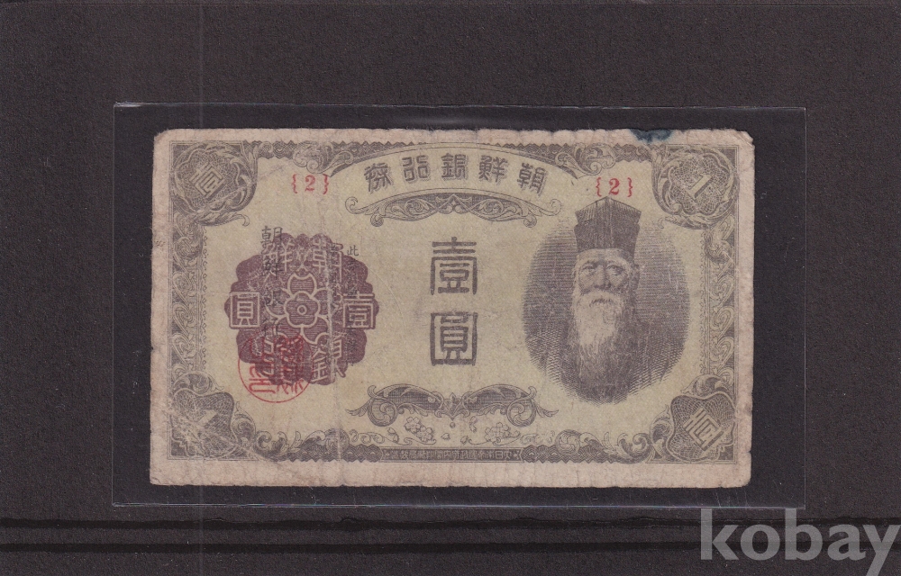 - 조선은행 1945년 을 일원 판번호 2번 사용제 지폐