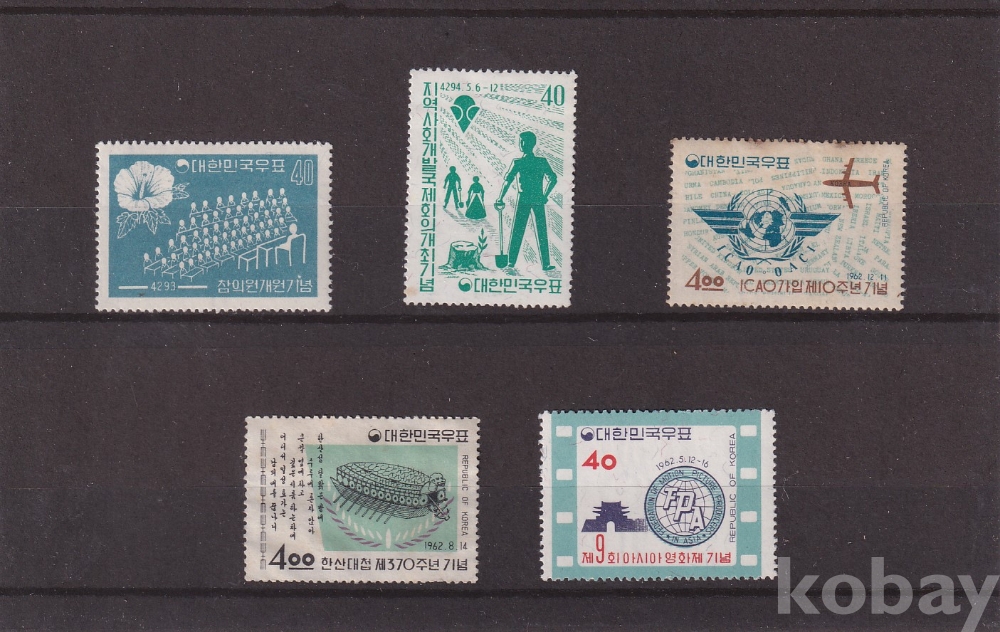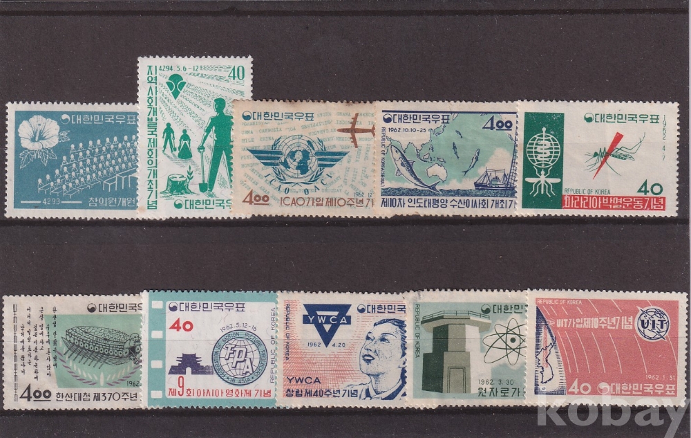 - 미사용 1960년대 기념우표 10종 모음 / 한산대첩 제 370주년, 마라리아 박멸운동 등