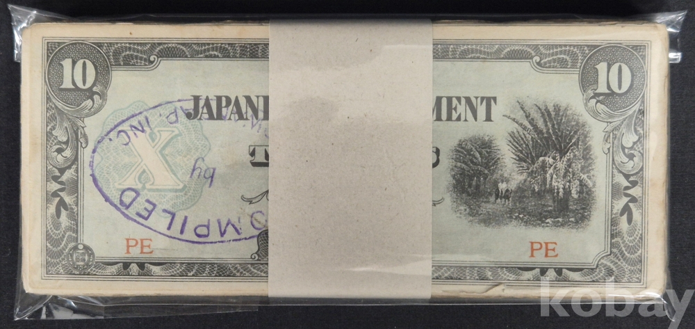 - 태평양 전쟁 일본 군표 10페소 필리핀 사용 약 100장 다발- 군용 수표