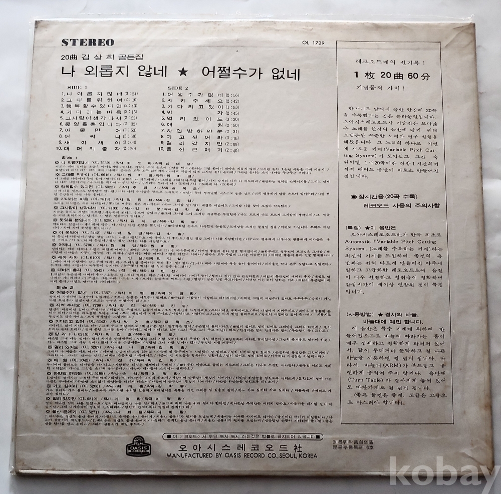 김상희(미개봉)Lp/나 외롭지 않네,어쩔수가 없네