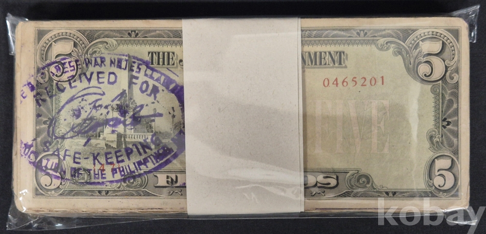 - 태평양 전쟁 일본 군표 5페소 필리핀 사용 약 100장 다발- 군용 수표