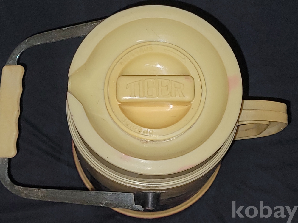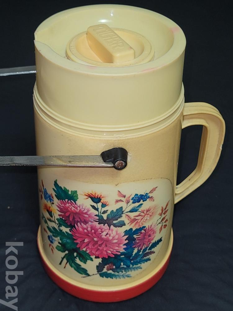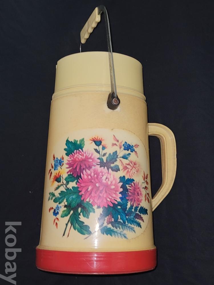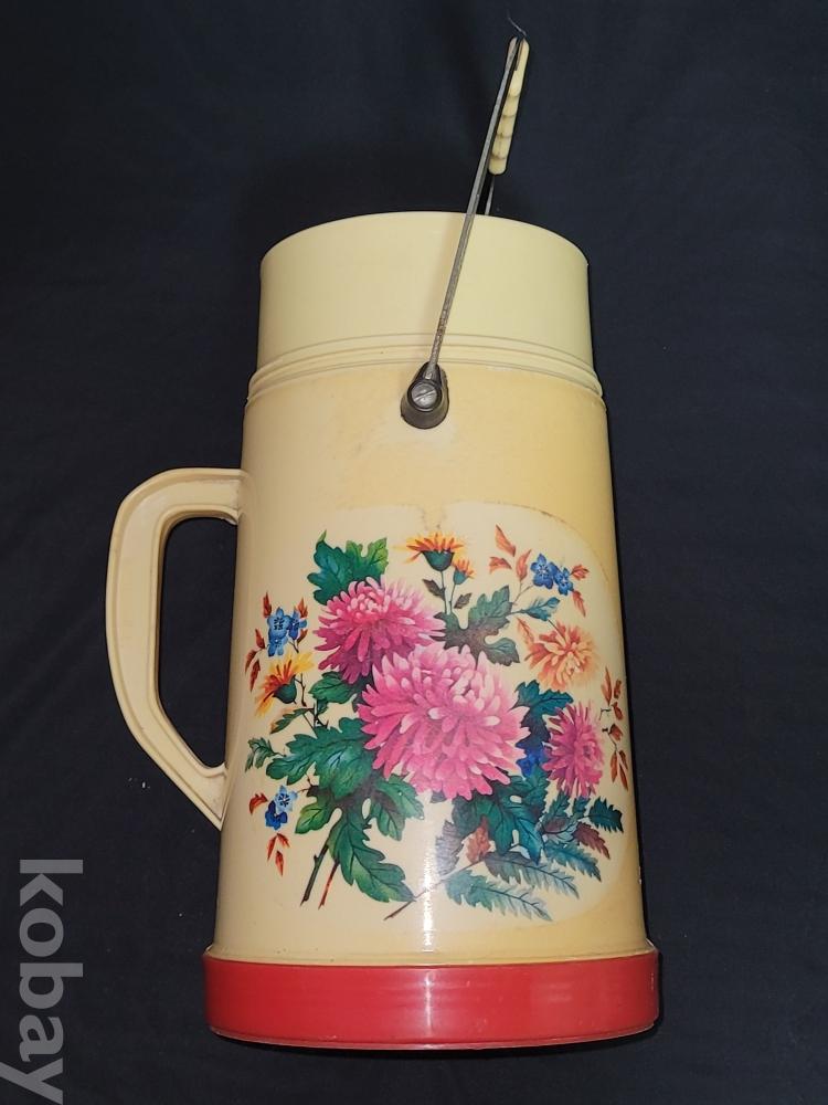 빈티지 세월 감이 느껴지는 1974년 모델 추억의 타이거 꽃가라(꽃무늬) 마호병(보온병)입니다.