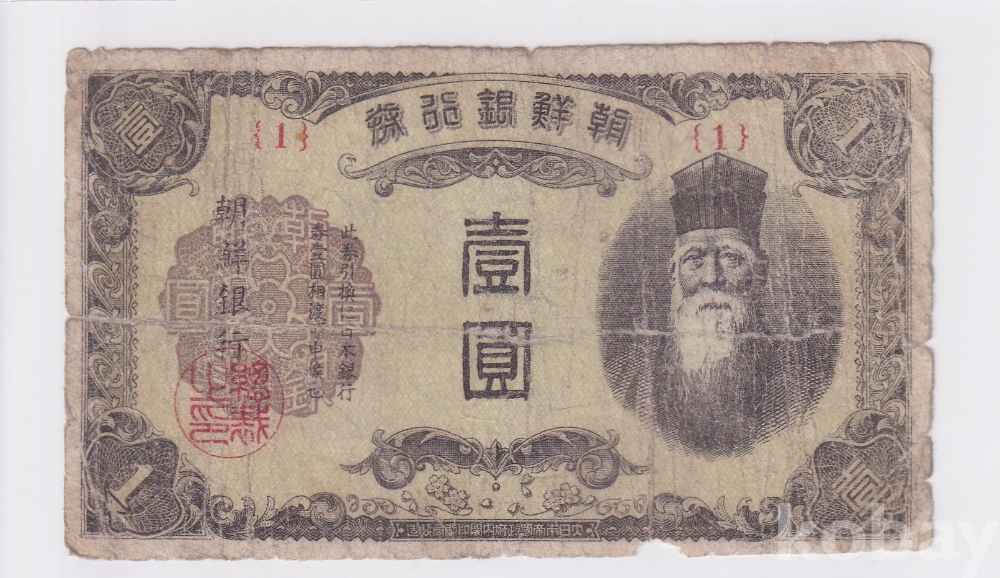 - 조선은행 1945년 을 일원 초판 판번호 1번 사용제 지폐