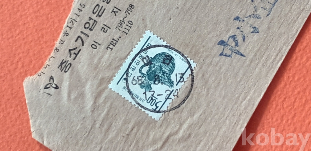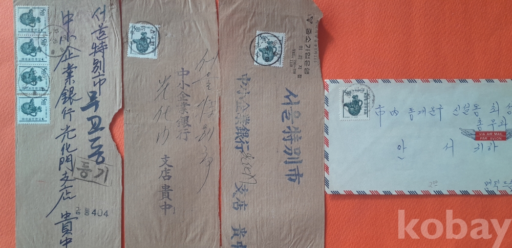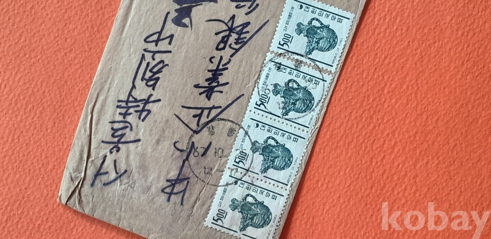 5원 어룡수병 우표 4매 첩부(강릉, 67. 10. 25) 등 실체봉피 3종 입니다.