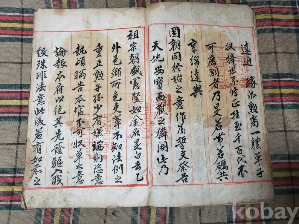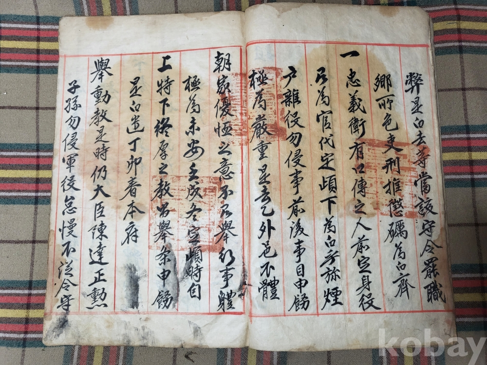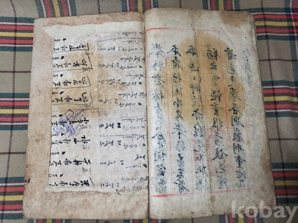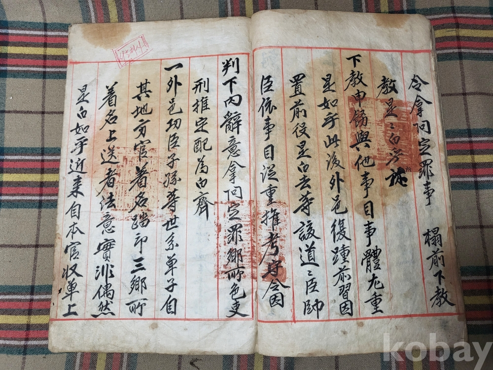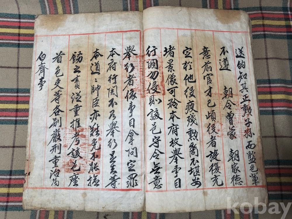 강먹에 휘갈겨쓴 시원스런글씨와 각 쪽마다 찍힌 도장들이 눈에띄는 조선시대 조정의 기록.