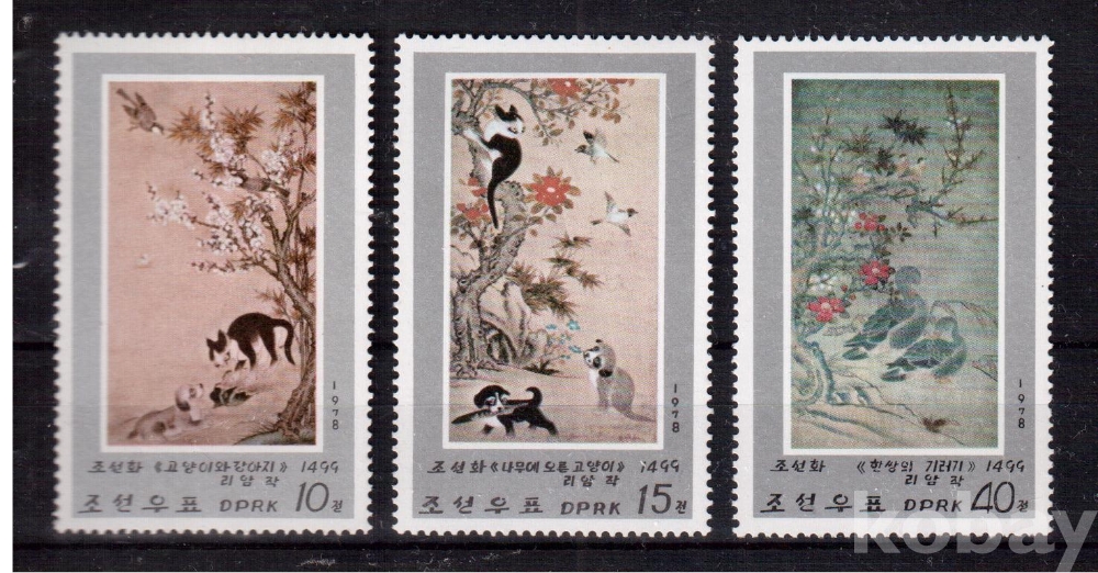 (미술) 북한 1978.10.16 16세기 화가 리암의 그림 3완 MNH