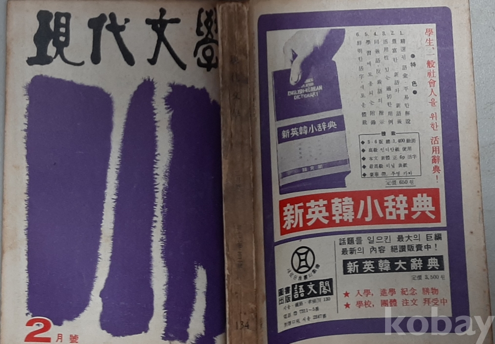 (별고)현대문학1966년2월호 NO134 표지 박고석