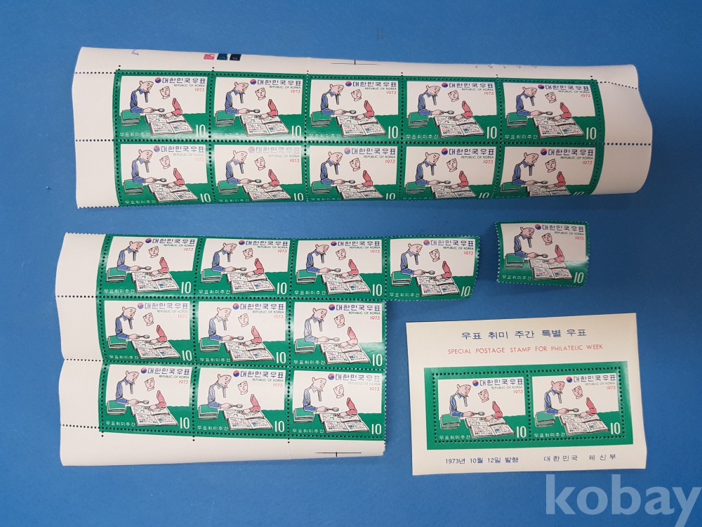 **** 우표 취미 주간 특별 우표/1973.10.12/시트바랬음/약 22매