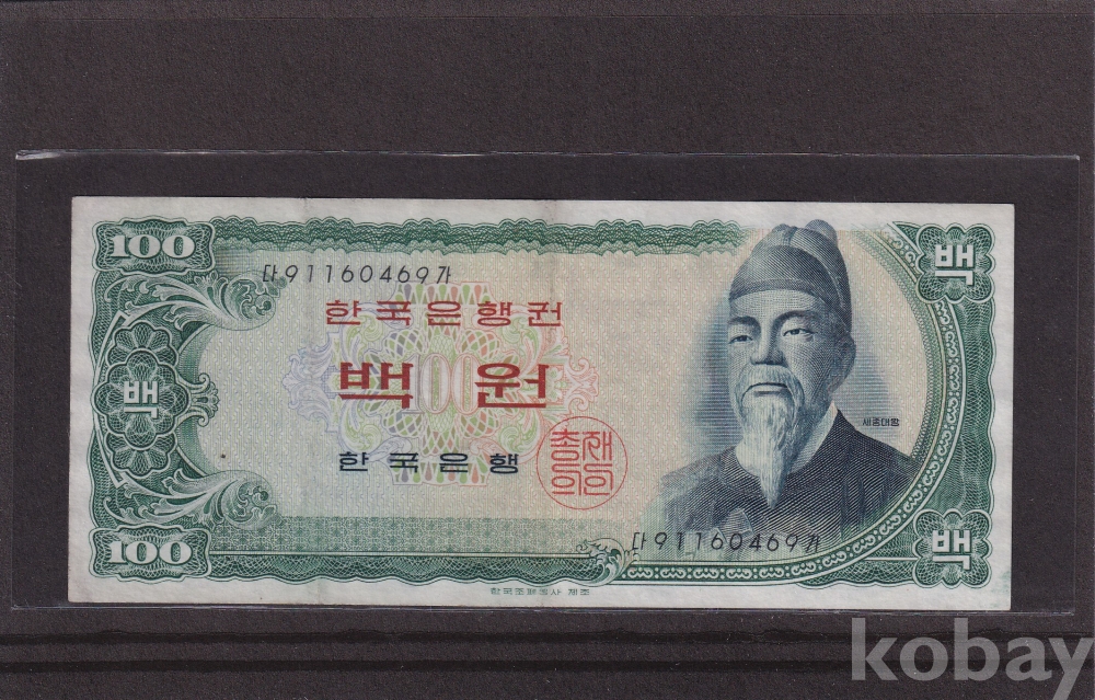 - 한국은행 1965년 세종 백원 줄세우기 9포인트 사용제 지폐