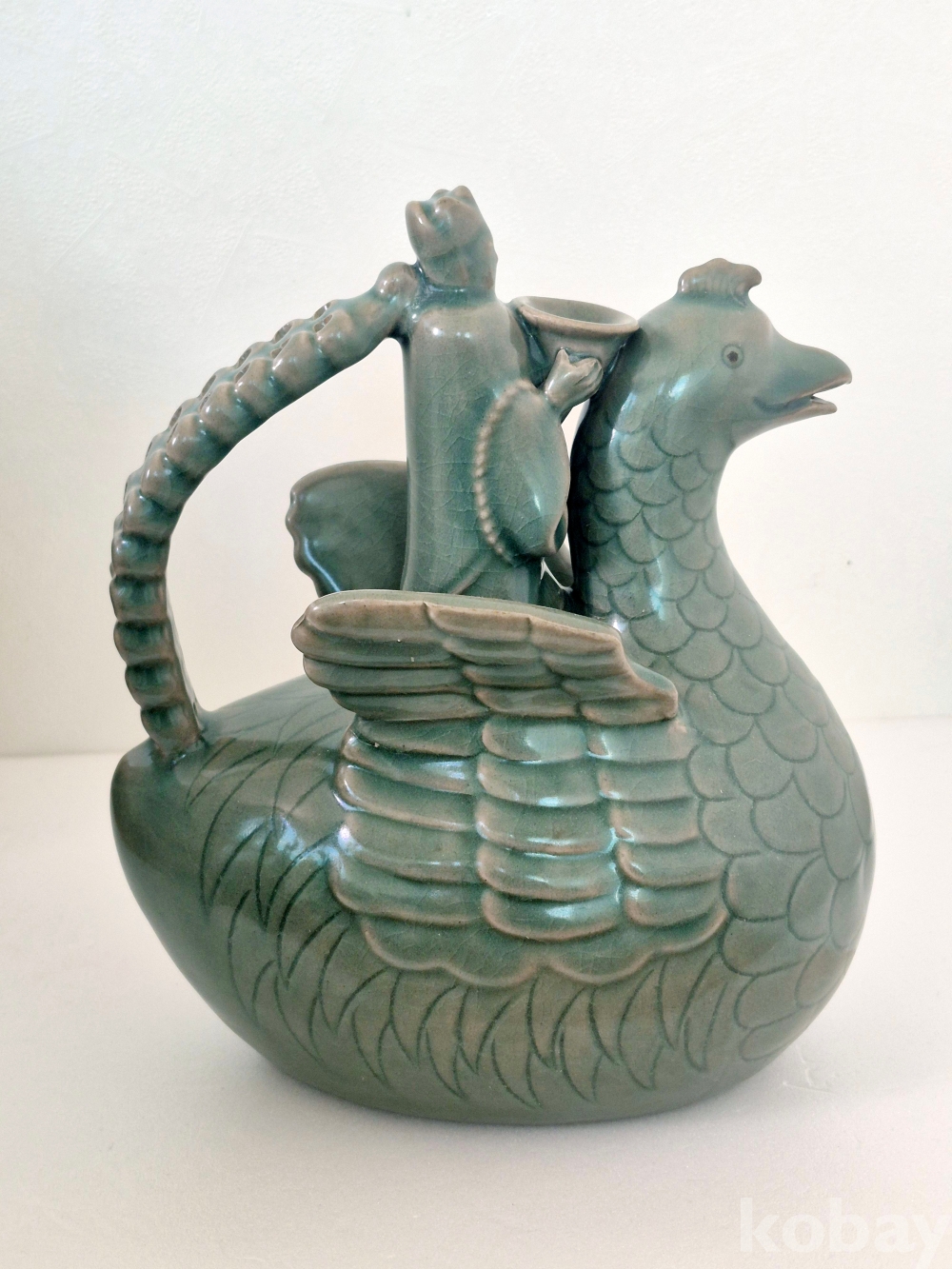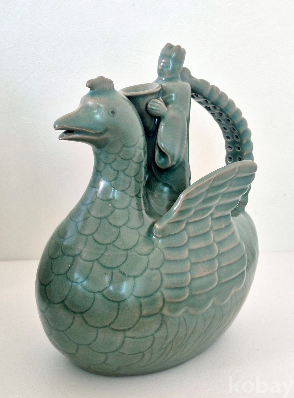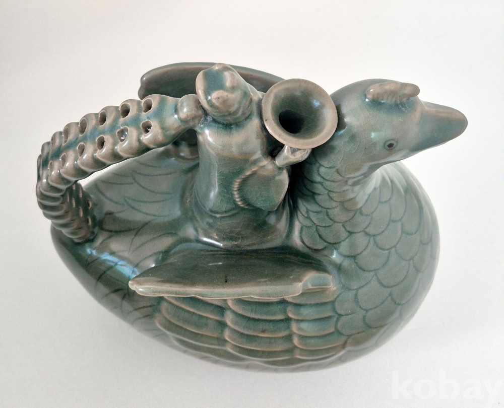 봉황을 타고 나는 신선의 형상으로 만들어진 고려 청자의 정수 입니다.