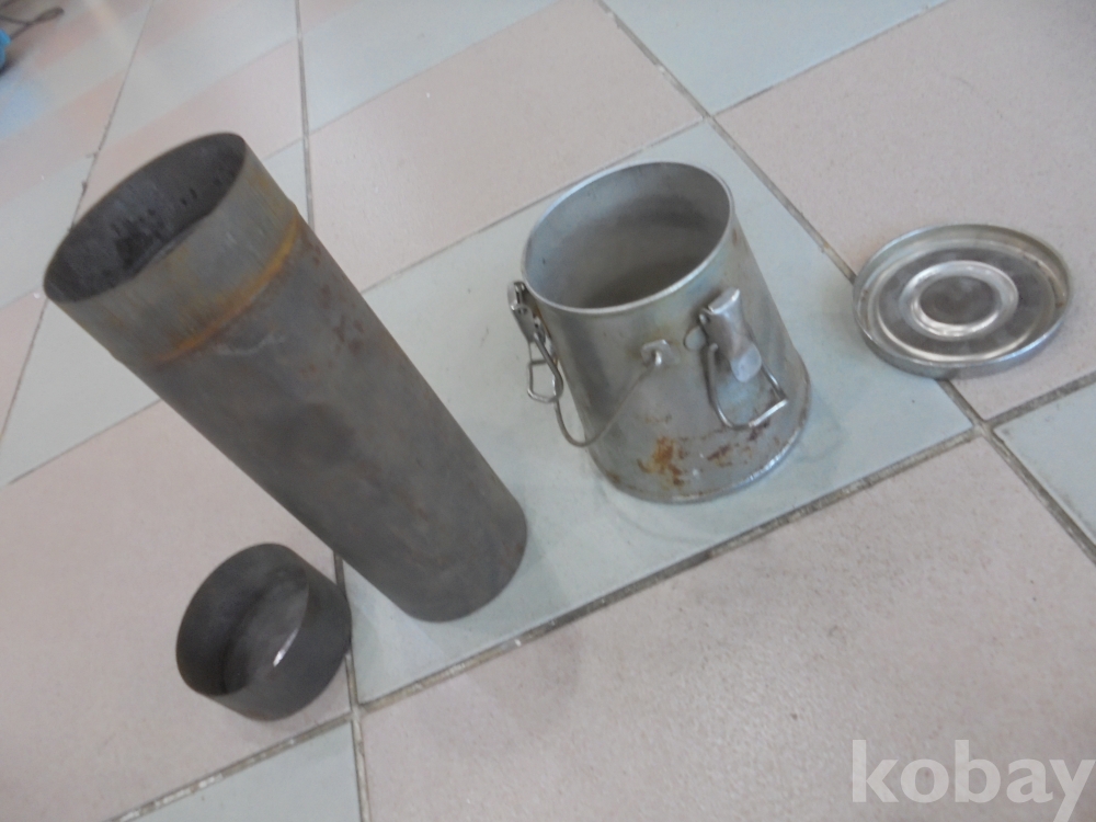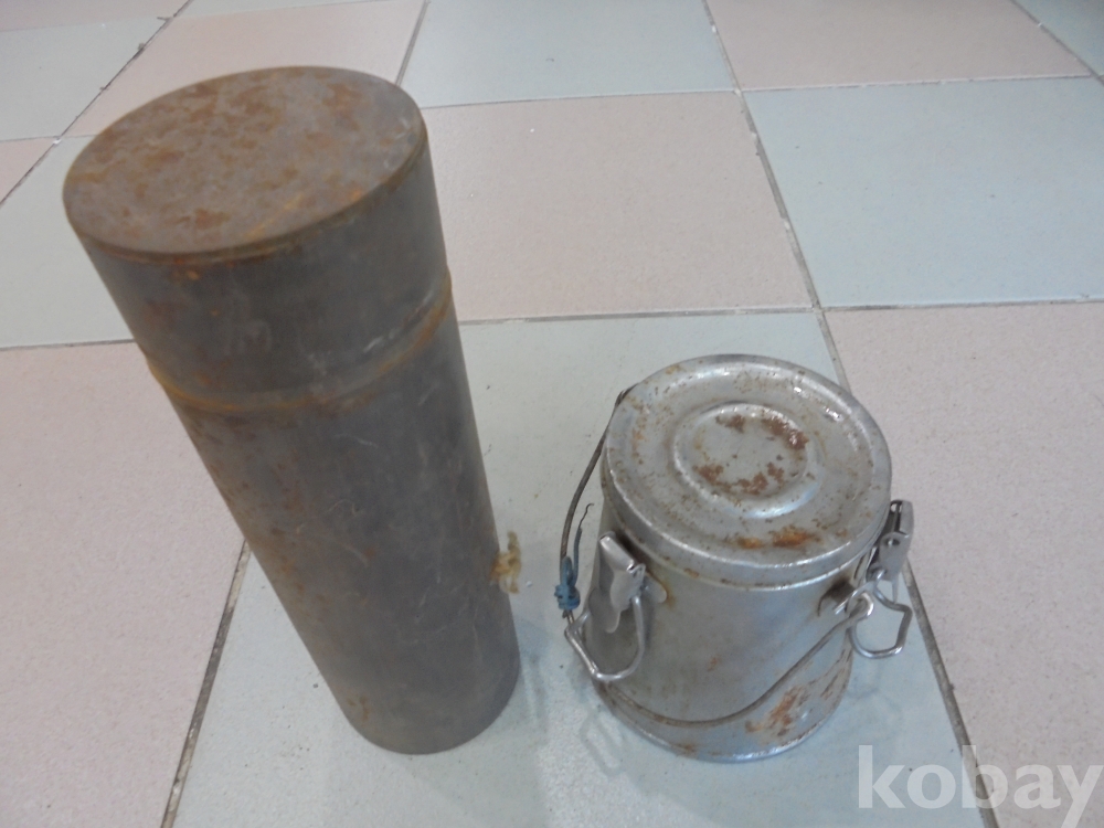 오래된 국방색의 통은 이가딱맞은 공기가안톨하여 안이깨끗한 양철통이며 스텐류의 손잡이이와 뚜껑 모양이피라미트형 잠구는고리로 특이한통