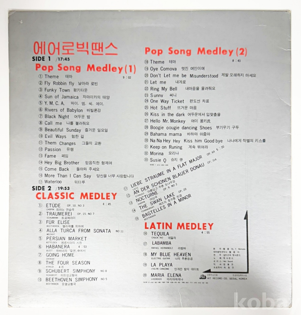 상품 설명 | Side A 1. Pop Song Medley (1) 2. Pop Song Medley (2) Side B 1. Classic Medley 2. Latin Medley | ||