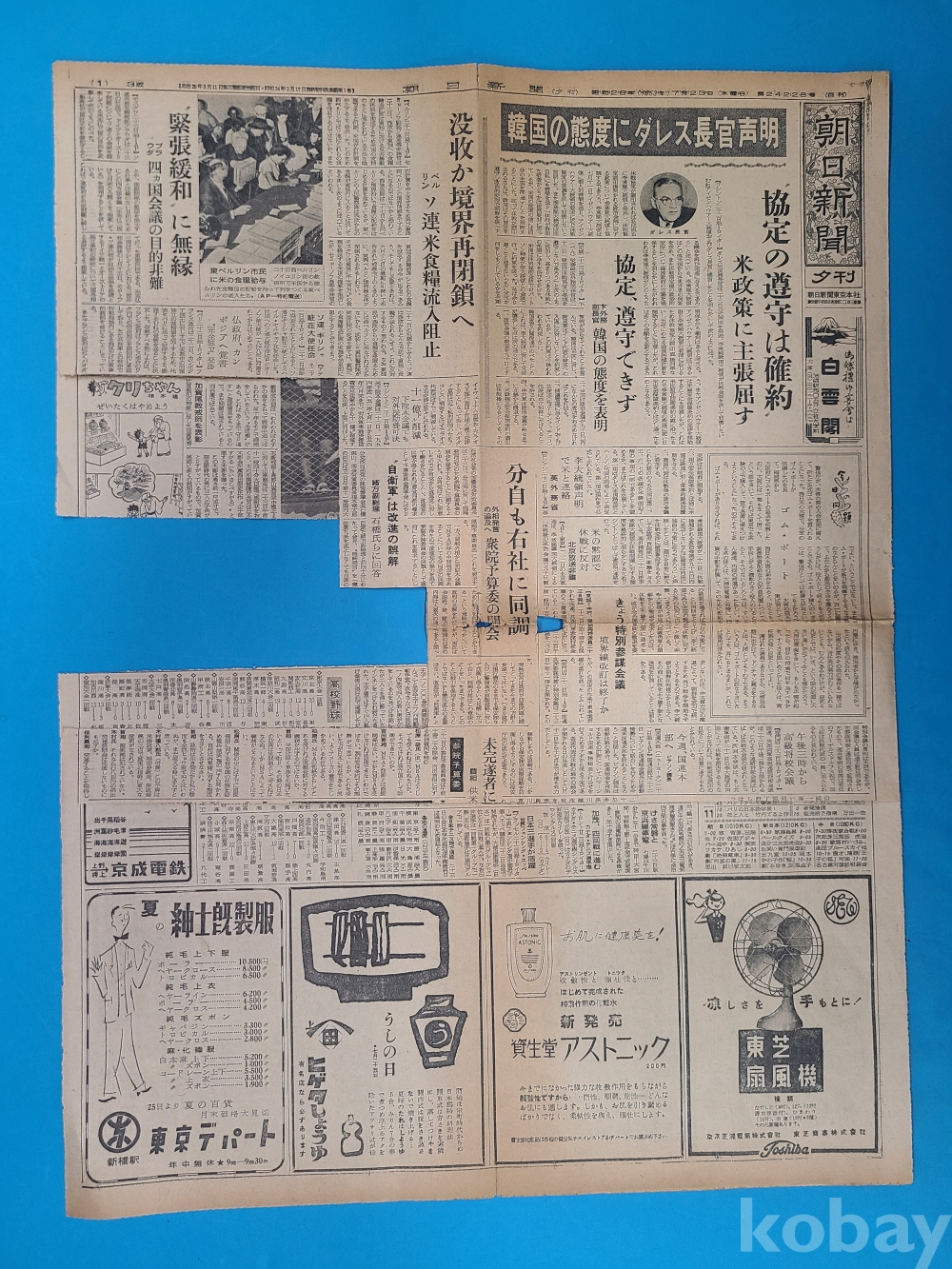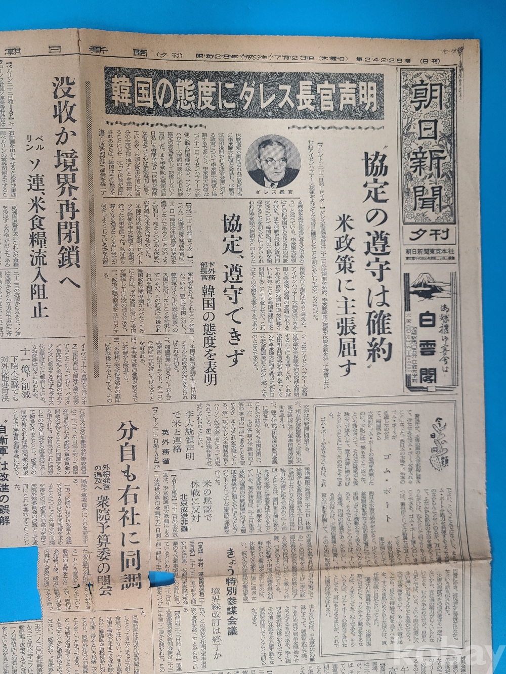 **** 6.25전쟁 관련기사가 시린 일본발행 신문 [조일신문]/1953.7.23./오려낸부분 있음