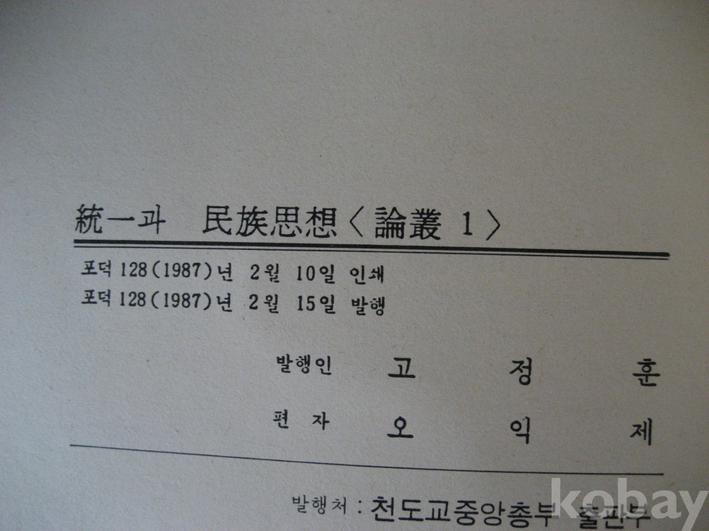 통일과 민족사상 ,,논최1 ,,,,천도교발행,,87년