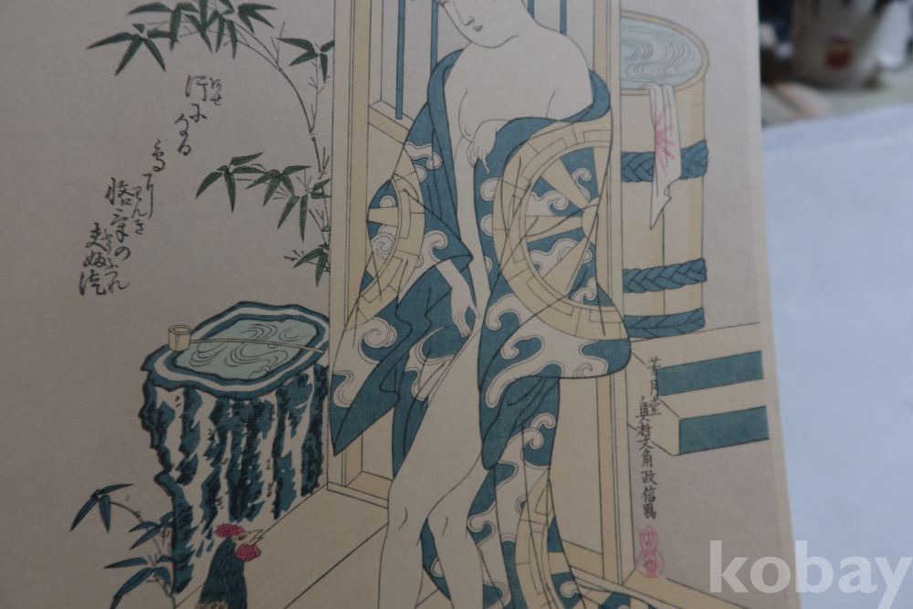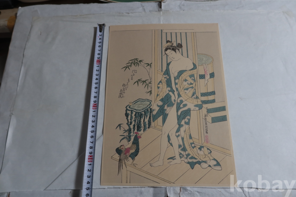 소화초기의 복각 목판화 임니다 마사노부의 명품 목판화 이며 재미난 소재를 가진 명작 임니다 글 내용이 시샘하는 암닭 이라고 함니다
