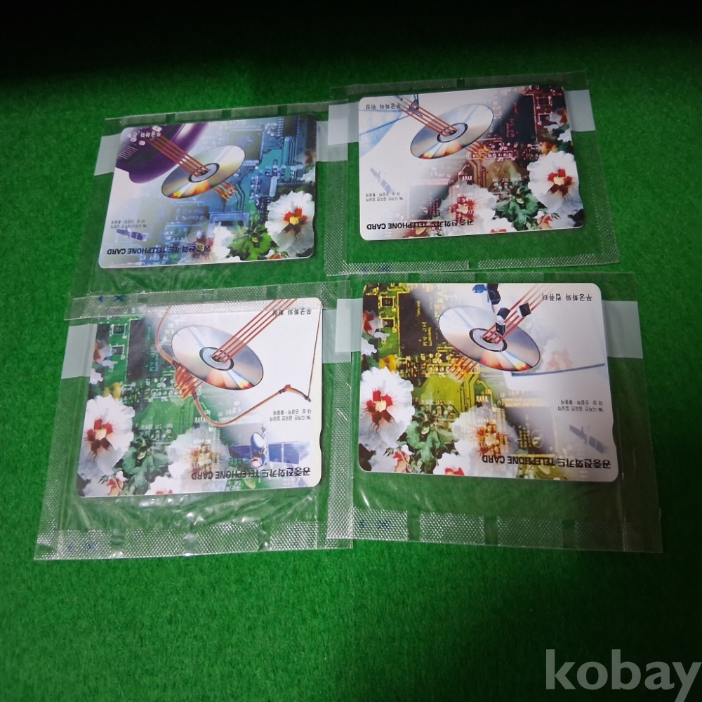 미사용  전화카드 4종 무궁화 위성, 콤푸트 ,전화, 화살,