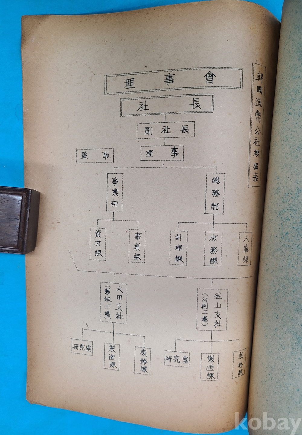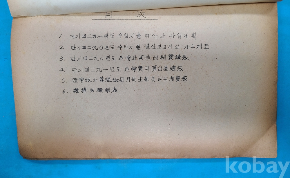 5.조폐지와 권련지별 월별생산고와 생산비표. 6.기구와 직제표