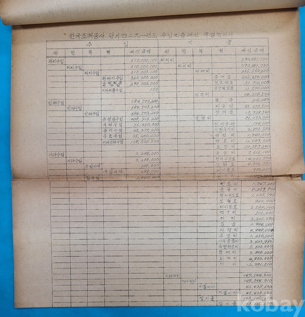 3.단기4290년도 조폐와기타인쇄실적표. 4.단기4291년도 조폐비용산출기초액