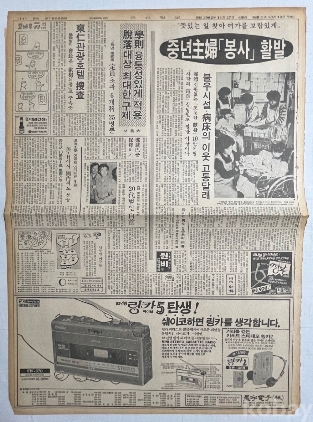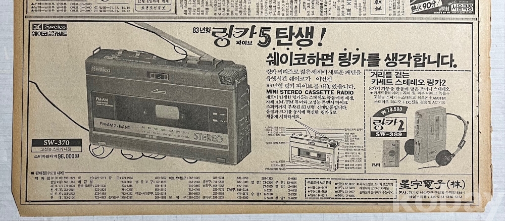 카세트 광고가 실린 1982년 조선일보 낱장입니다.