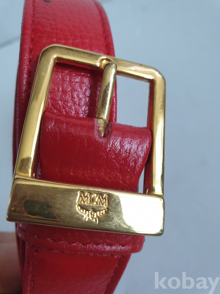 [천원경매] 11-140 MCM 여성용 레드 컬러 벨트(버클빼고 96cm, 폭 2.5cm, 사용감있음)