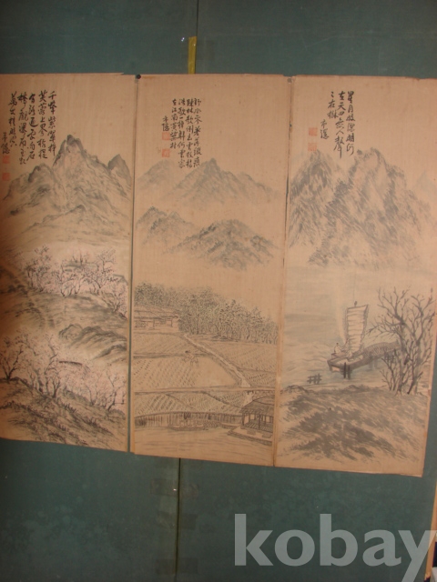 오래된 시은 박이화(市隱 朴貳和)의 산수화 6곡(33.5×83.5×6)입니다.