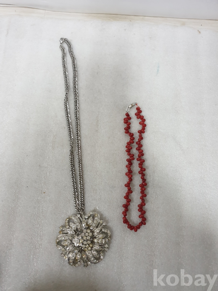 {천원경매} Y-11.1782 큐빅 목걸이 외 1개(큐빅 빠진곳 있음)
