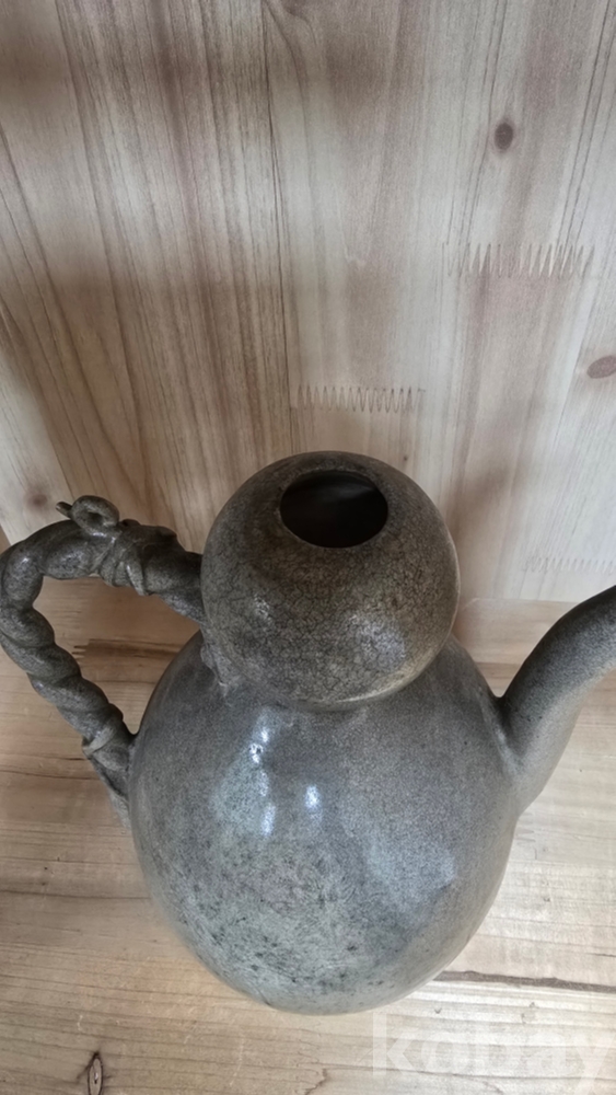 주전자의 주둥이(입구)를 물고 있는 듯한 역동적인 모습을 하고 있습니다. 이러한 기교는 일반적인 주전자에서 찾아보기 힘든 희귀한 디자인입니다.