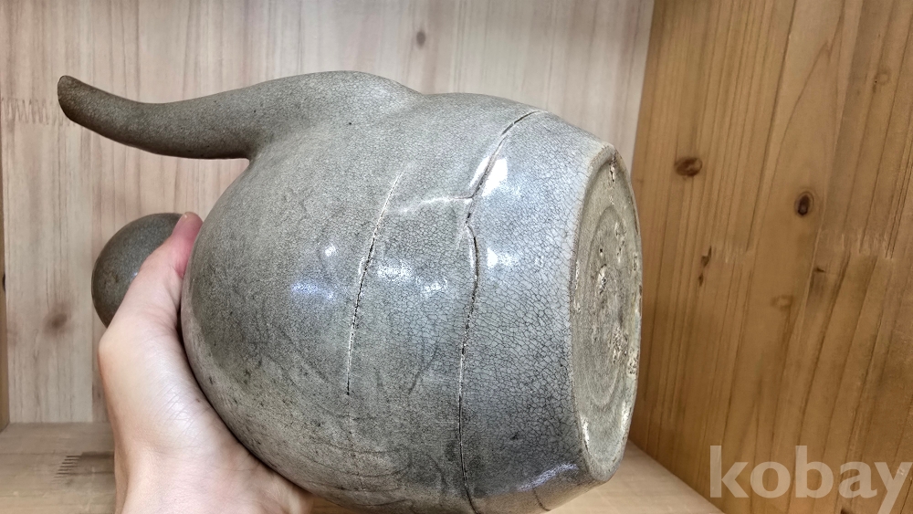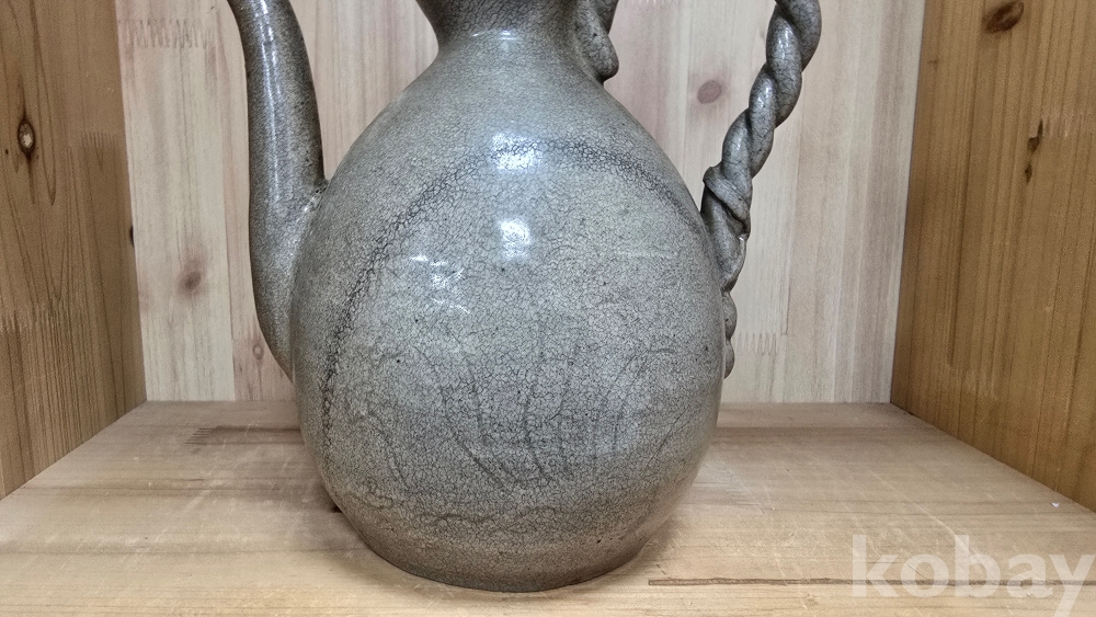 하지만 주전자 본체만으로도 그 희귀한 조형미와 섬세한 음각 문양을 감상하기에 충분한 가치를 지닌 작품입니다.