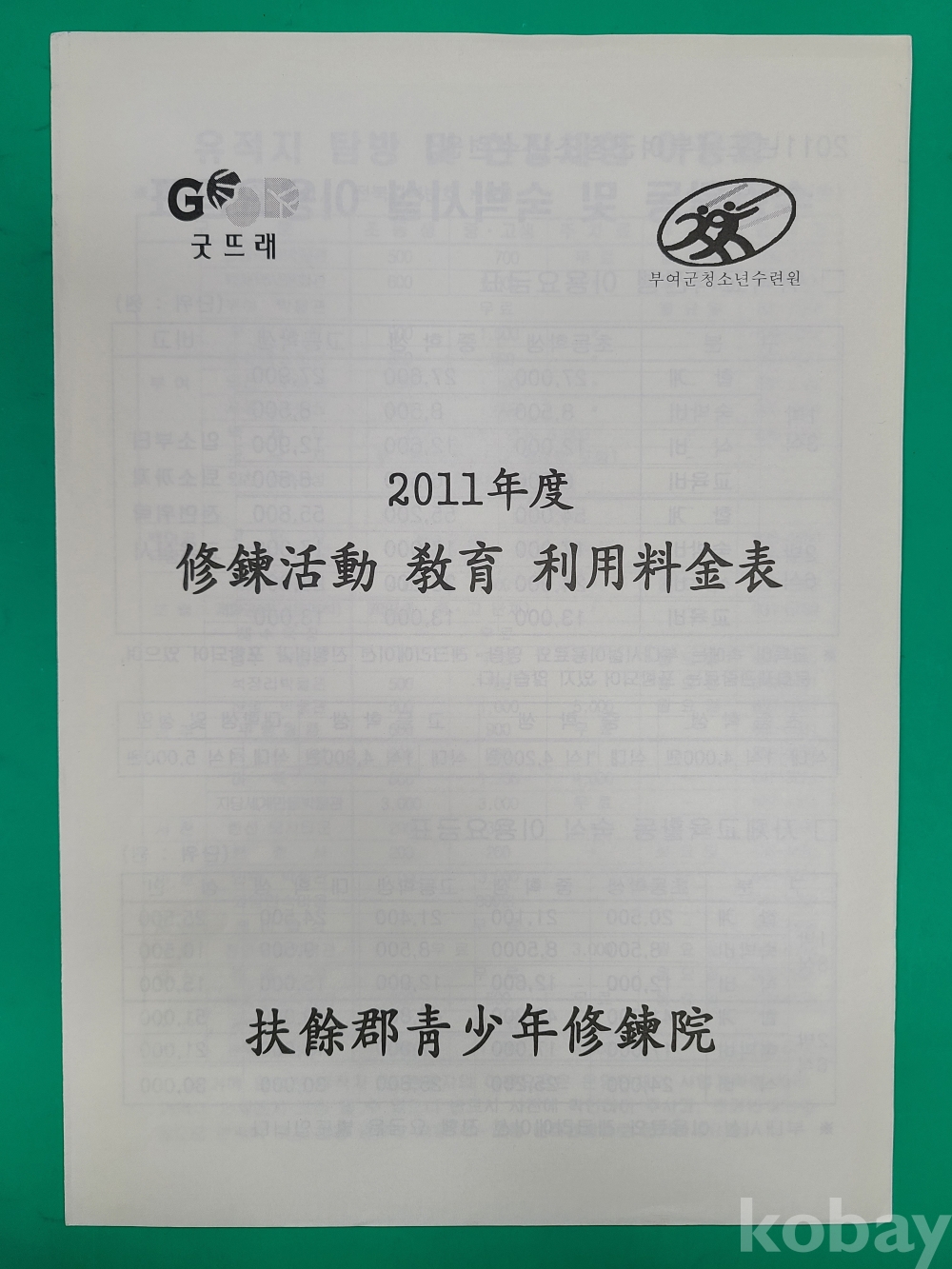 [부여자료] 수련활동 교육 이용요금표(부여군청소년수련원),백제의 향기를 찾아서,부여여행