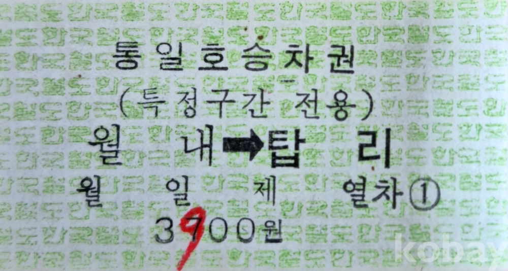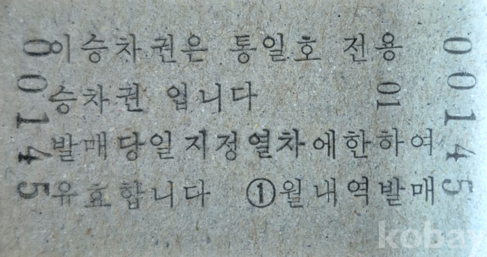 통일호 승차권(초기형광권) 월내-탑리 일반입니다.
