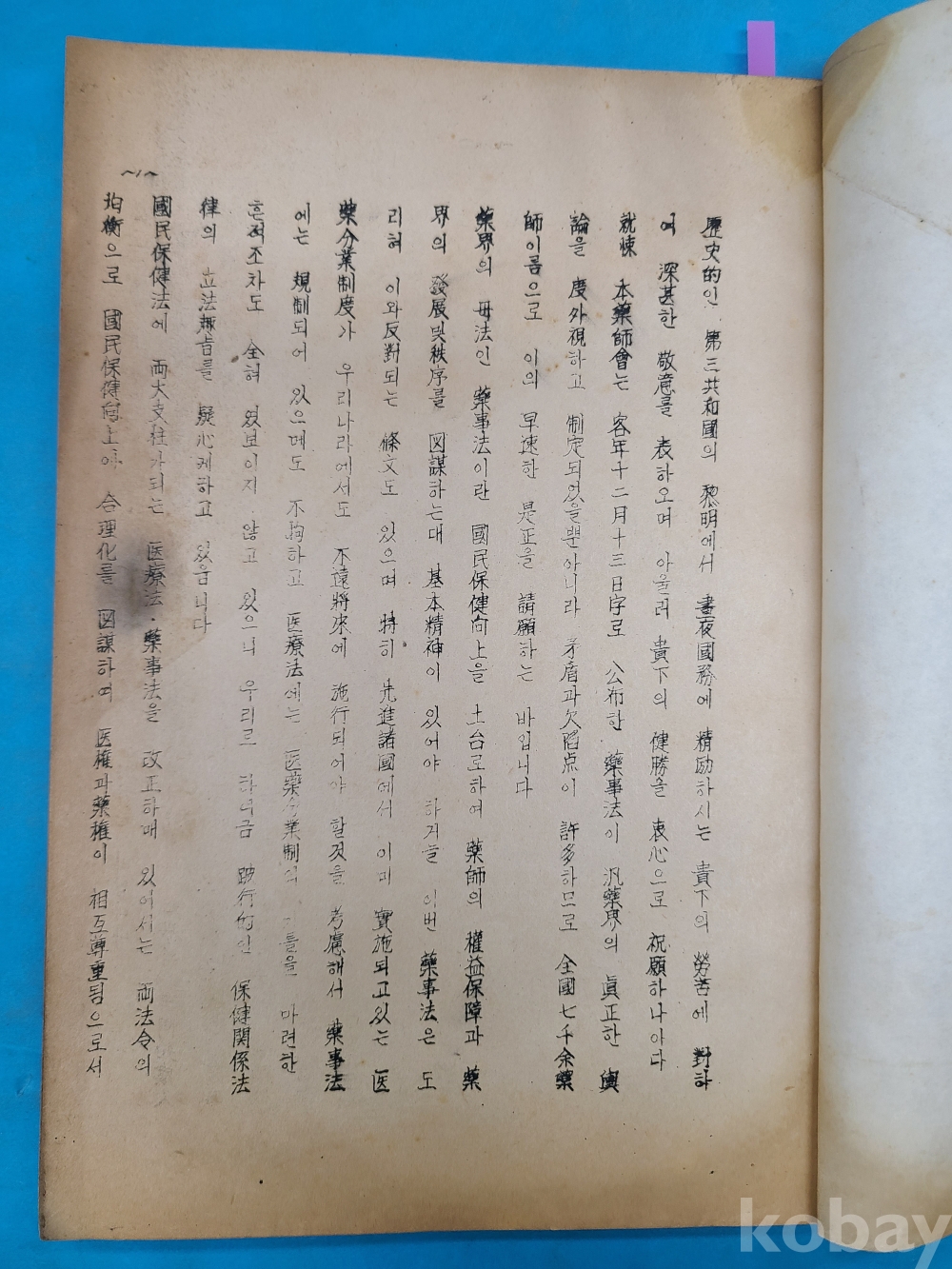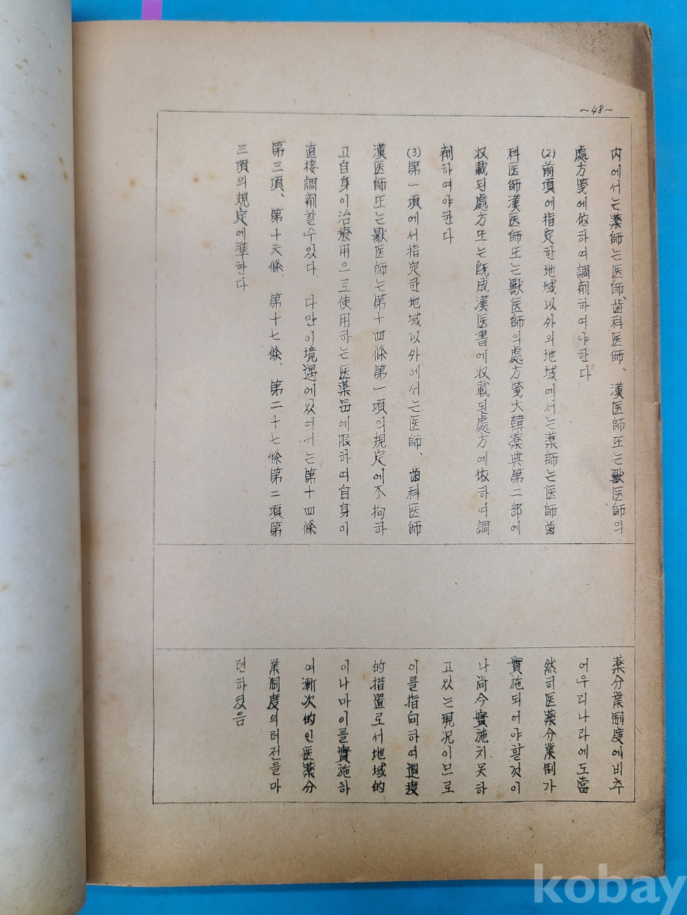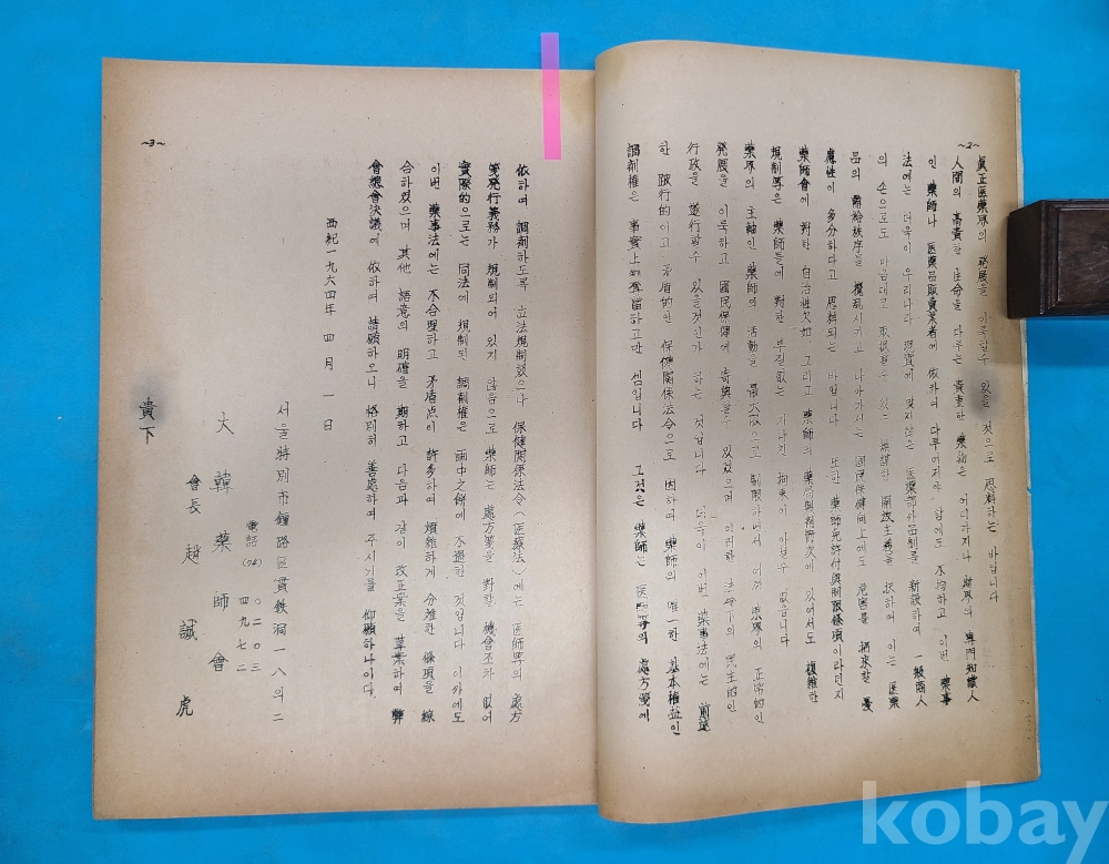 1964년4월1일 대한약사회 회장 조선호가 제출한 [藥師法改正請願書] 등사판. 48쪽