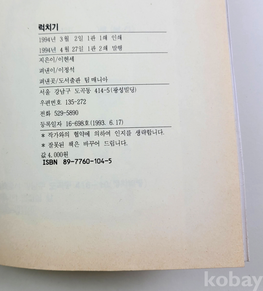 물 품 명 | 이현세 테마비전 / 럭치기 / 1994년 / 팀매니아 |