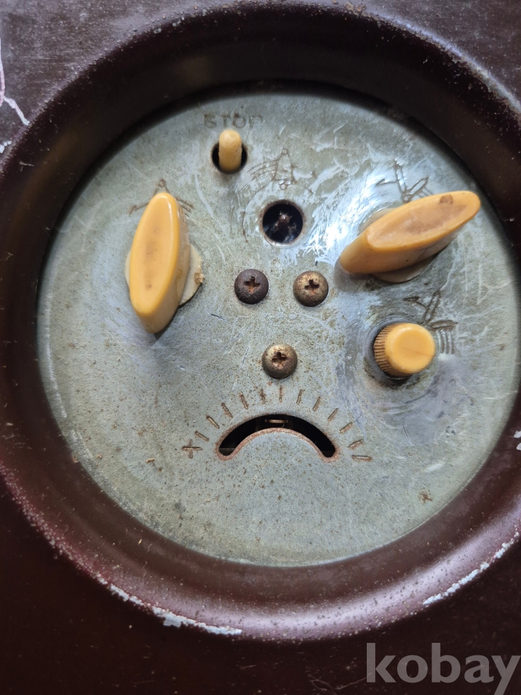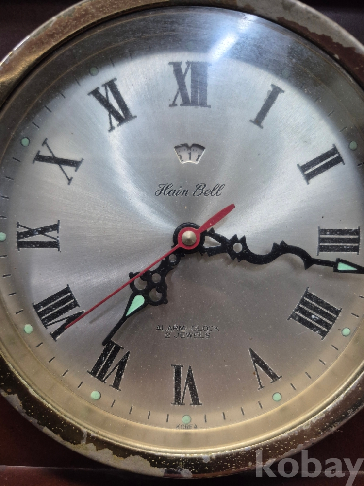 1970년대 탁상용 기계식 알람 과 날짜 시간이 있는 탁상용 시계 정상작동 모델 hain bell 메이드 인 코리아 8*31*19
