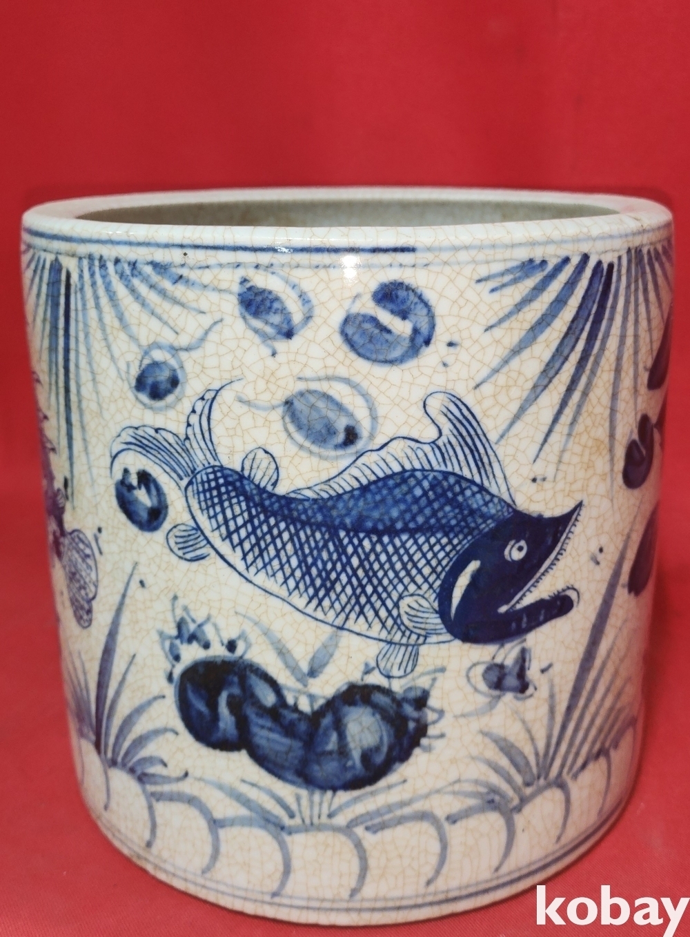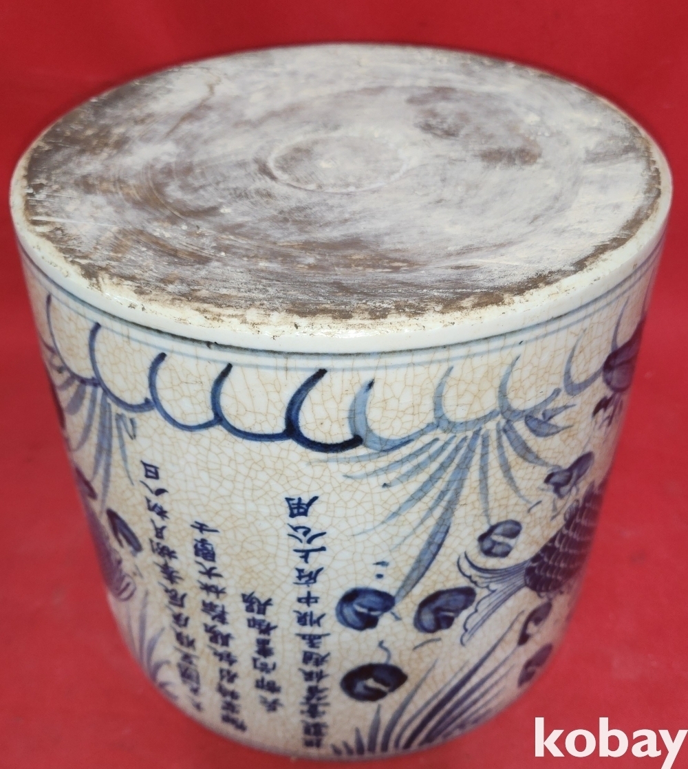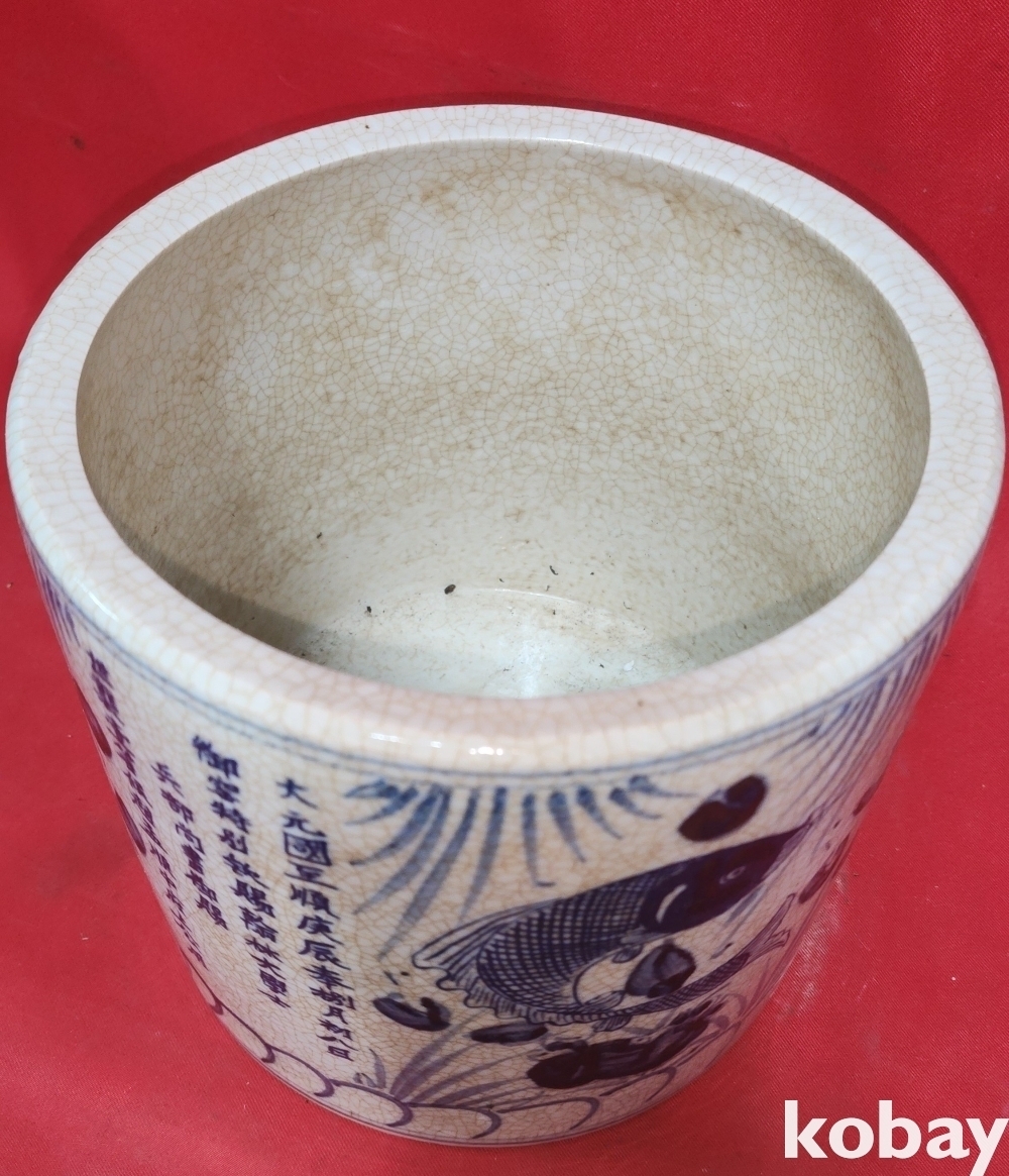 대원국지정 경진 관지 청화 수초에 어(魚)문양 지통(紙桶)입니다,