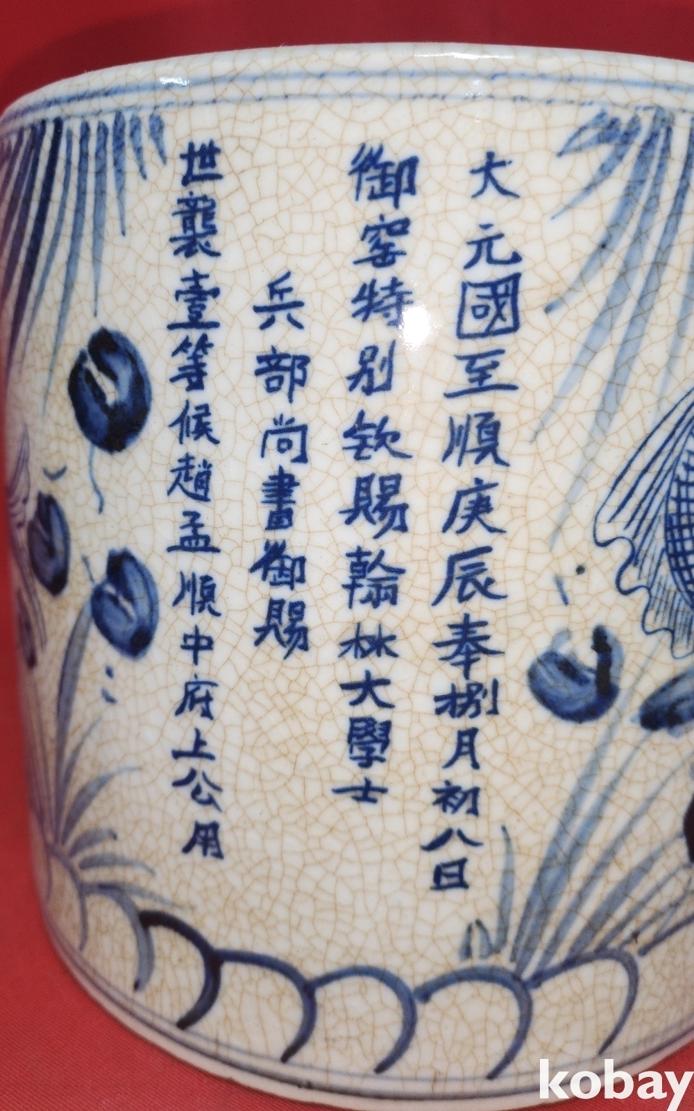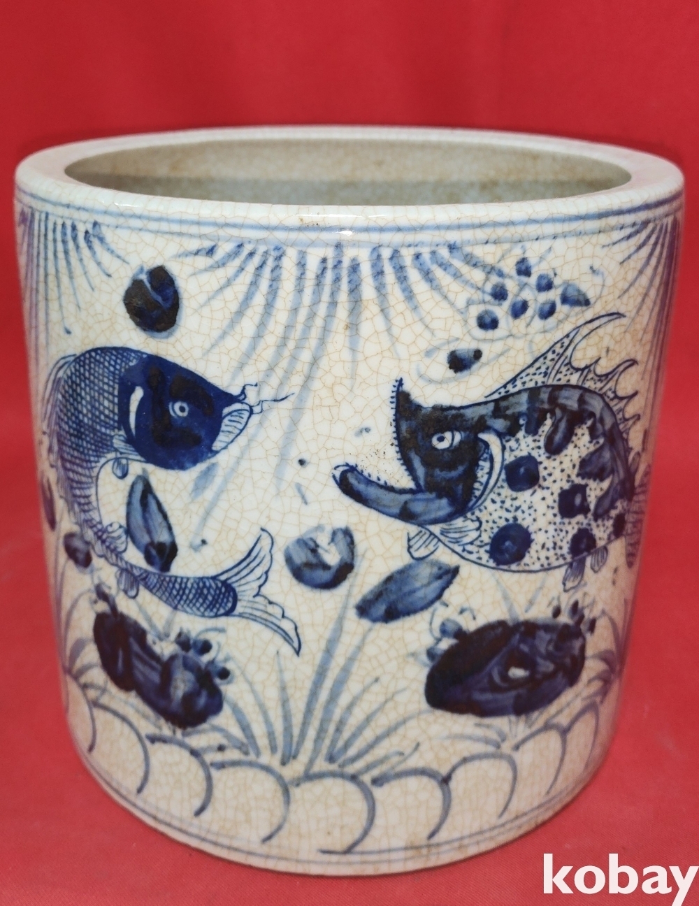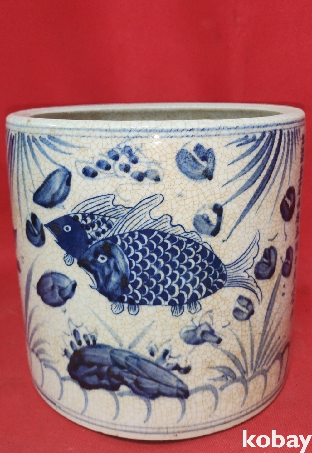 대원국지정 경진 관지 청화 수초에 어(魚)문양 지통(紙桶)입니다,