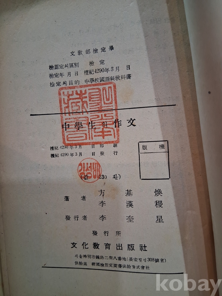 [1957년 교과서]중학생의 작문3/방기환, 이한직/문화교육출판사