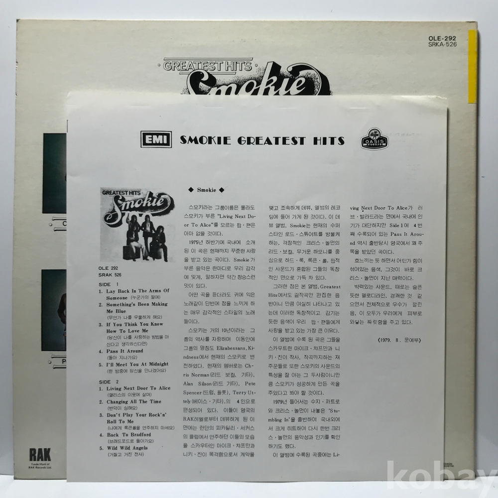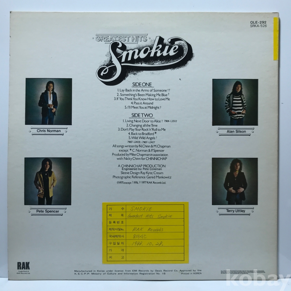 LP 84,010-69 SMOKIE Greatest Hits . 자켓 EX 알판 EX 77 년제작 국내반