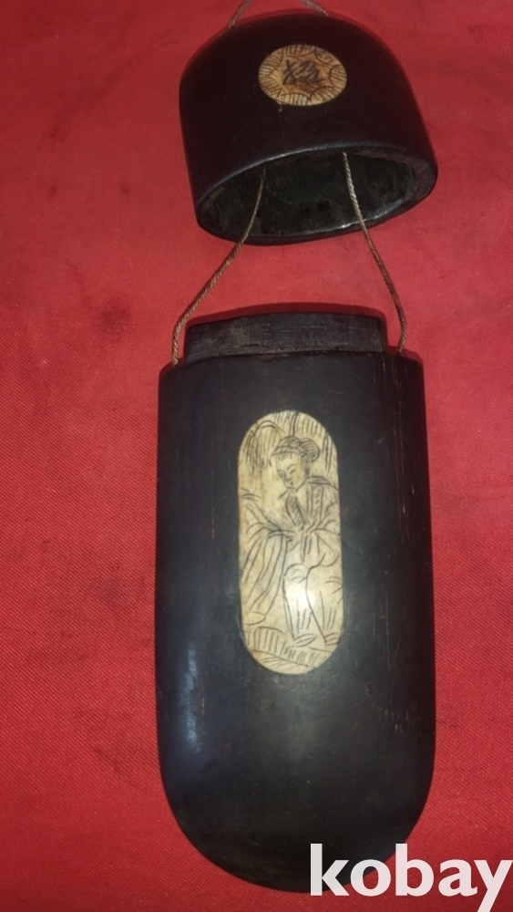 조선시대 나무에 우각(牛角)을 상감기법으로 삽임하고 인물과(동자) 한자가 양면에 있는 안경집입니다,
