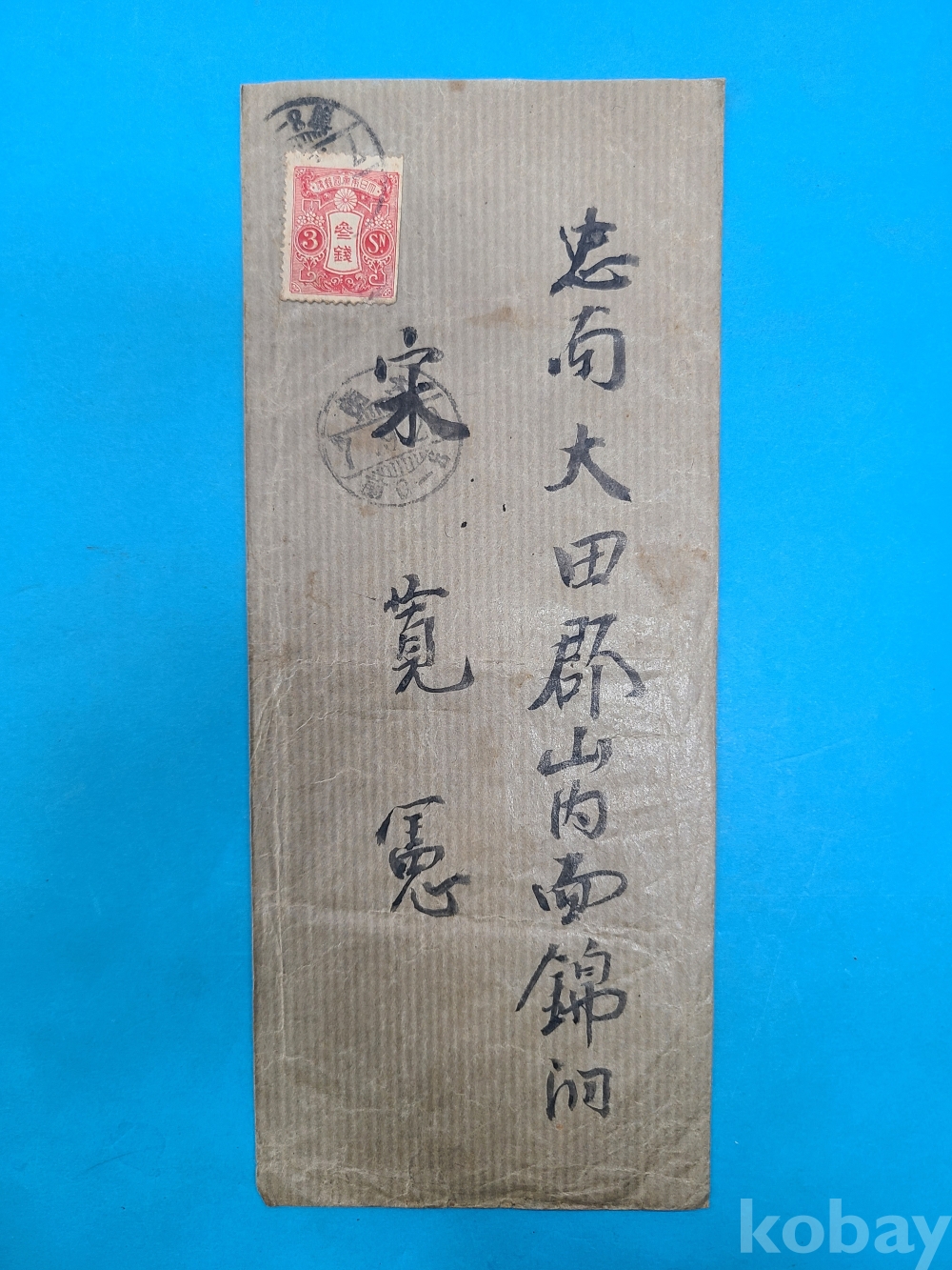 ▶일제강점기 3전 단첩 괴산 →대전군 산내면 실체봉투