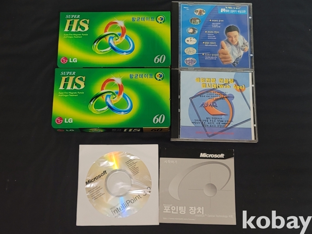 빈티지 미개봉 LG 비디오 공테이프 2종과 OB라거, 웹시대 CD 등 일괄입니다.